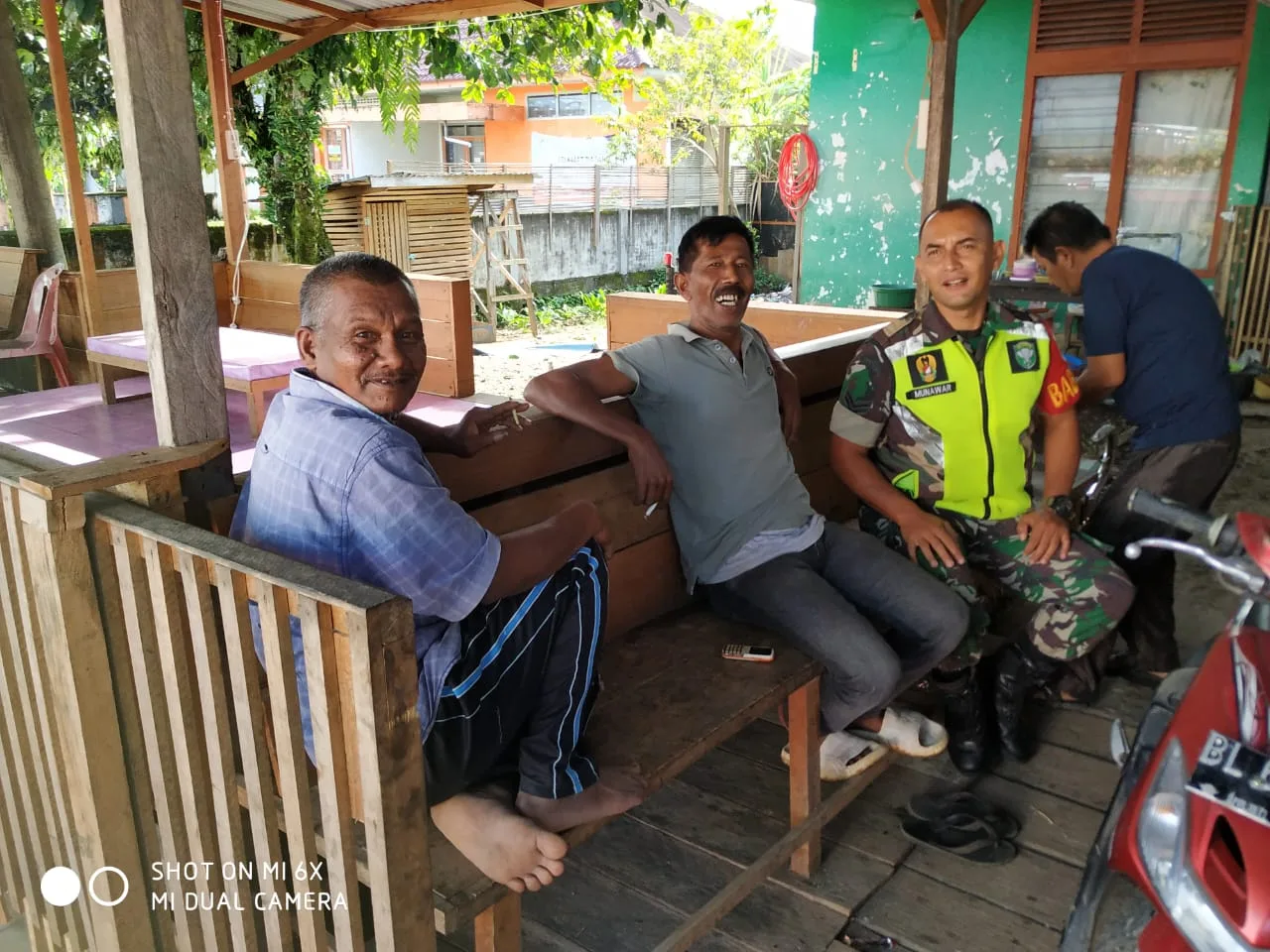 Kegiatan Komsos ini menjadi sarana penting bagi Babinsa untuk mengetahui perkembangan situasi wilayah sekaligus mempererat silaturahmi dengan masyarakat. Dalam kesempatan tersebut, Sertu Munawar berdialog langsung dengan salah satu warga, Samsuar, mengenai kondisi keamanan, kegiatan sosial, serta kebutuhan masyarakat setempat.