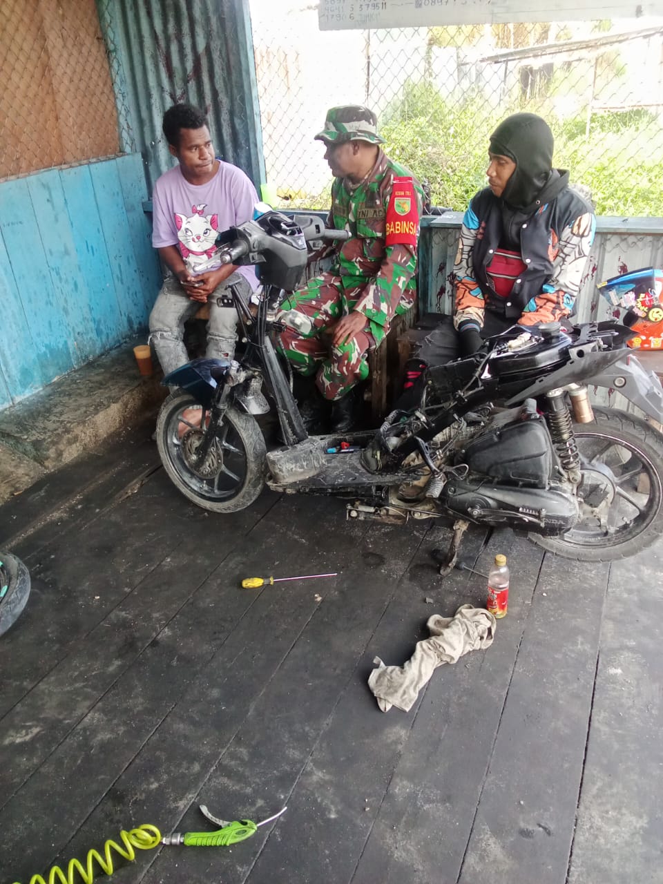 Sementara itu bapak Piter, pemilik bengkel menyampaikan trimakasih kepada Babinsa yang selalu mengunjungi dan memonitoring wilayah kampung atouda semoga kampung atouda selalu aman Dan damai ujuar bapak Piter pemilik bengkel.