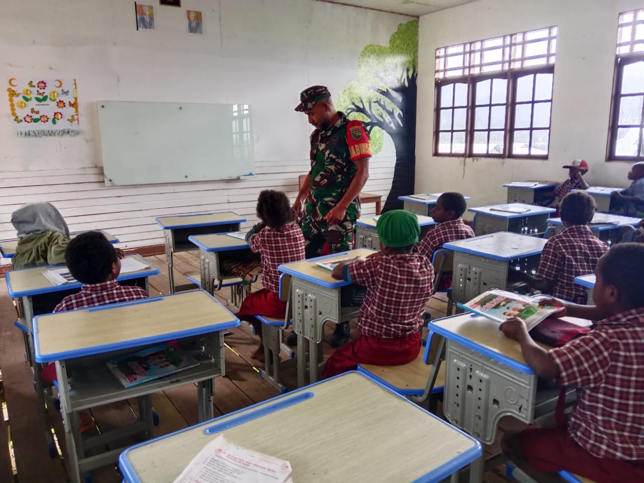 Obano – Untuk menumbuhkan jiwa patriotisme terhadap generasi muda penerus bangsa, Bintara Pembina Desa (Babinsa) Koramil 1703-03/Obano Serka Lerry Dilan Kumune, memberikan Wawasan Kebangsaan (Wasbang) kepada siswa-siswi SD Inpres Obano. Kampung Obano, Distrik Paniai Barat, Kabupaten Paniai, Prov. Papua Tengah. Selasa,(03/06/2025).
