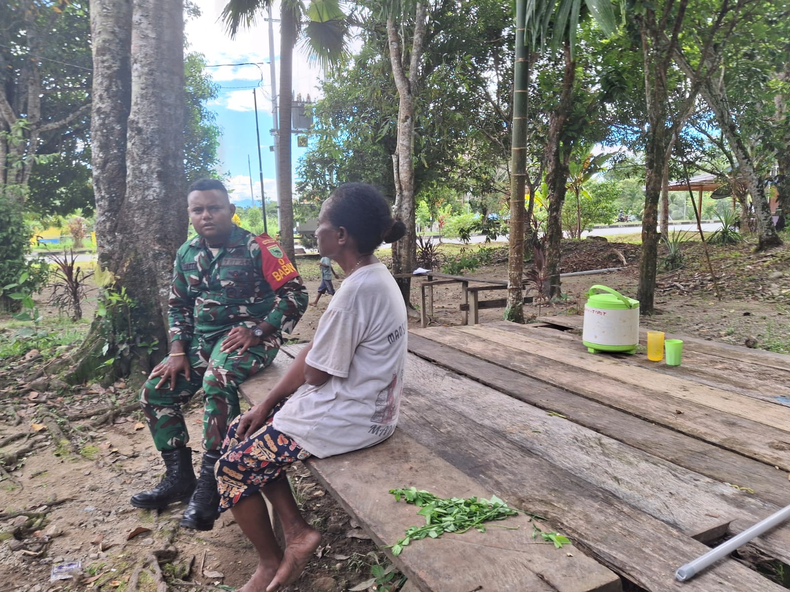 Dalam kunjungan tersebut, Serda Hendra melakukan komunikasi sosial (komsos) dengan tokoh perempuan setempat, Ibu Ida Manaruri. Melalui dialog yang penuh keakraban, diperoleh respons positif berupa dukungan dari tokoh perempuan Kampung Isei terhadap keberlangsungan dan pelaksanaan Undang-Undang TNI sebagai upaya menjaga stabilitas keamanan di wilayah Teluk Wondama.