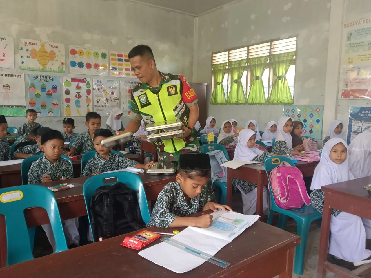 Pidie – Babinsa Koramil 26/Grong-Grong Kodim 0102/Pidie, Serda M. Yusuf, turut melaksanakan pengawasan dan pendampingan penyaluran program Makan Bergizi Gratis (MBG) yang disalurkan oleh Yayasan Nafsul Muthmainnah Al Aziziyah kepada siswa-siswi Sekolah Dasar Negeri di Kecamatan Grong-Grong, Kabupaten Pidie, sabtu (01/11/2025).