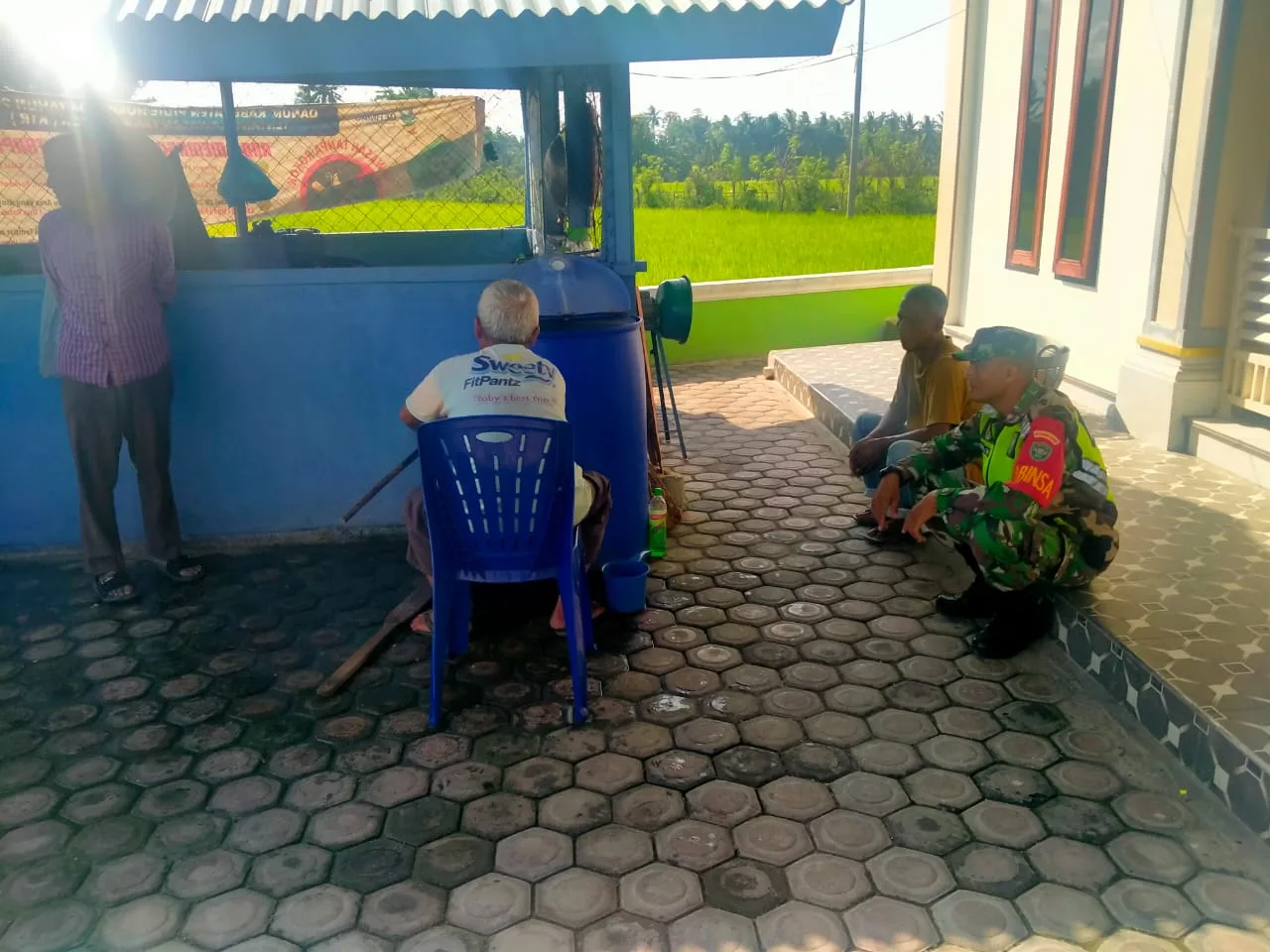 Pidie – Babinsa Koramil 05/Indra Jaya Kodim 0102/Pidie, Sertu Fadlon memanfaatkan waktu luang menjelang berbuka puasa untuk menyambangi masyarakat di desa binaannya, Desa Ulee Birah, Kabupaten Pidie, Selasa (11/03/2026).