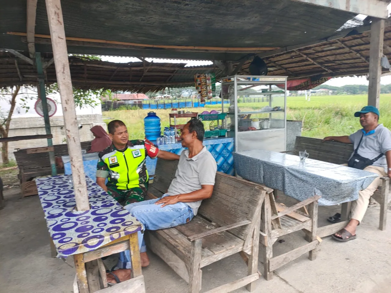 Babinsa Posramil Suka Makmue kodim 0116/ Nara Serda Dedi Sunardi Sedang dalam menjalin rasa keakraban serta kebersamaan yang baik dengan warga Babinsa melaksanakan kegiatan rutin komsos di Desa kerak tampai kecamatan Suka Makmue, kabupaten Nagan raya
