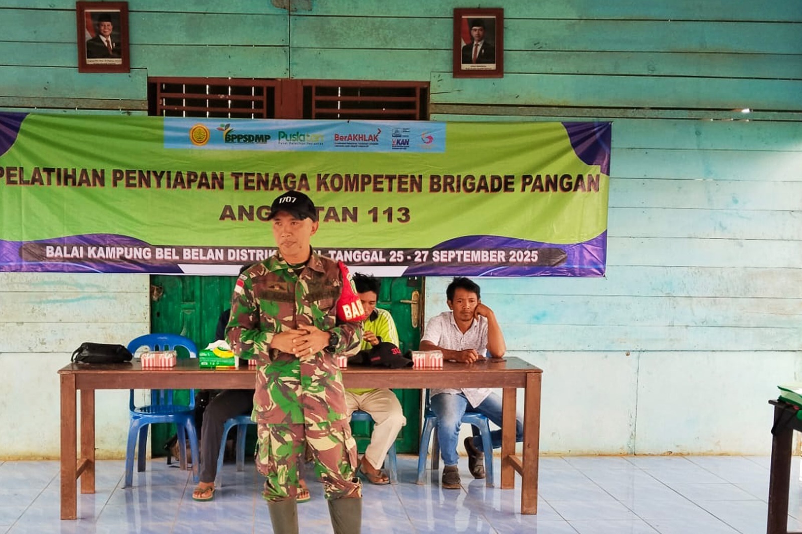 Merauke, Pada hari Sabtu, 27 September 2025 pukul 09.00 WIT, Babinsa Koramil 1707-05/Ulilin Sertu Muchammad Agus (Babinsa Kampung Belbeland) dan Koptu Lalu Zulkarnain (Babinsa Kampung Kirely), melaksanakan kegiatan pendampingan pelatihan penyiapan tenaga kerja kompeten Brigade Pangan Angkatan 113. Kegiatan yang berlangsung di Kampung Belbeland dan Kampung Kirely, Kabupaten Merauke – Provinsi Papua Selatan digelar oleh Balai Besar Pelatihan Pertanian (BBPP) Kementerian Pertanian.