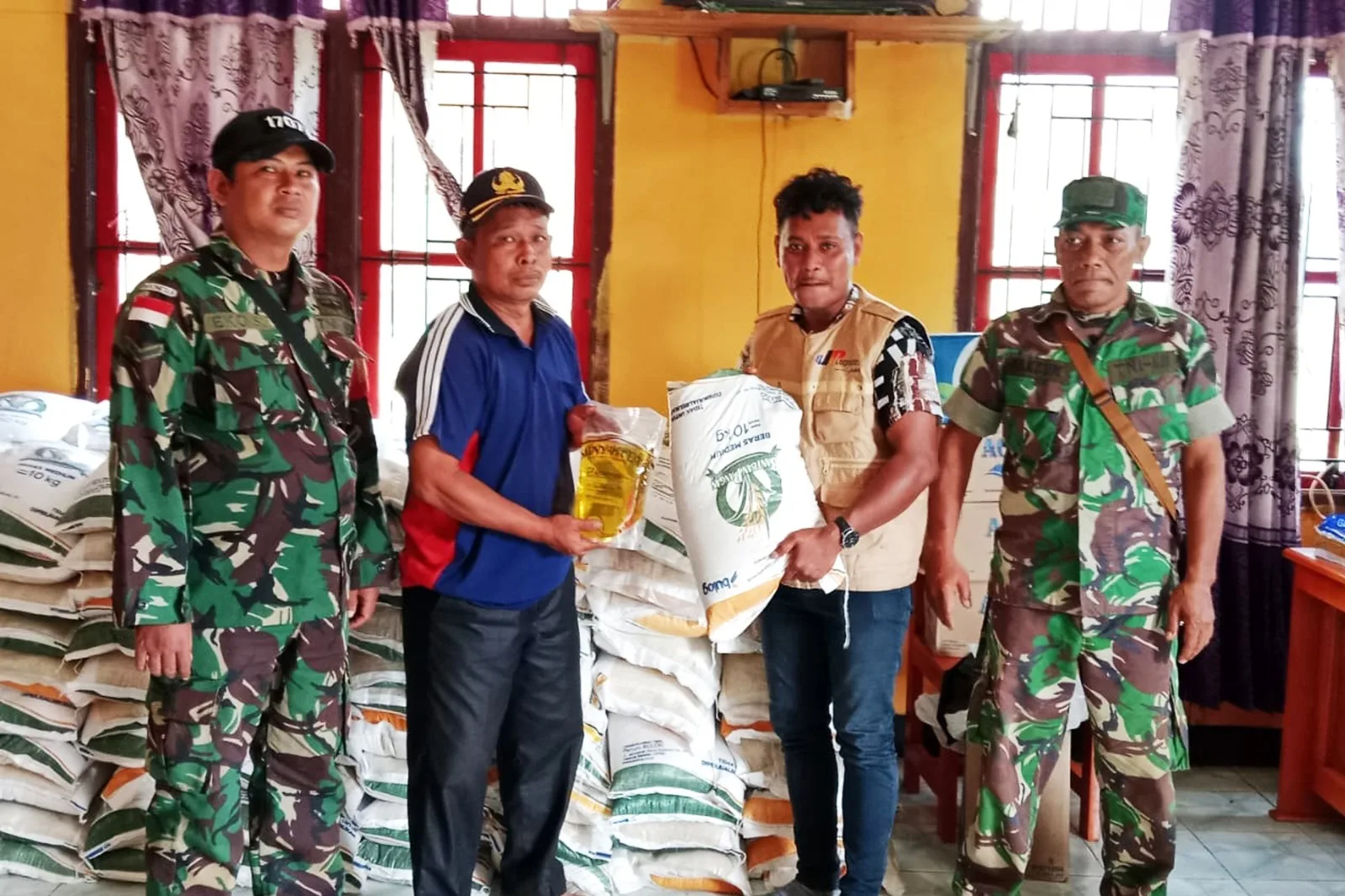 Kepedulian terhadap kesejahteraan masyarakat terus ditunjukkan aparat kewilayahan. Babinsa Koramil 1707-01/Muting, Peltu Maksum bersama Serda Eko Setiawan, melaksanakan pendampingan penyerahan Bantuan Langsung Tunai (BLT) berupa beras dan minyak goreng kepada masyarakat Kampung Sigabel Jaya, Distrik Muting, Kabupaten Merauke – Papua Selatan bertempat di Balai Kampung Sigabel Jaya. Senin (22/12/2025).