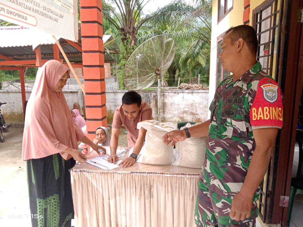 Babinsa Pasi Raja Dampingi Penyaluran Bantuan Pangan Beras dari Pemerintah