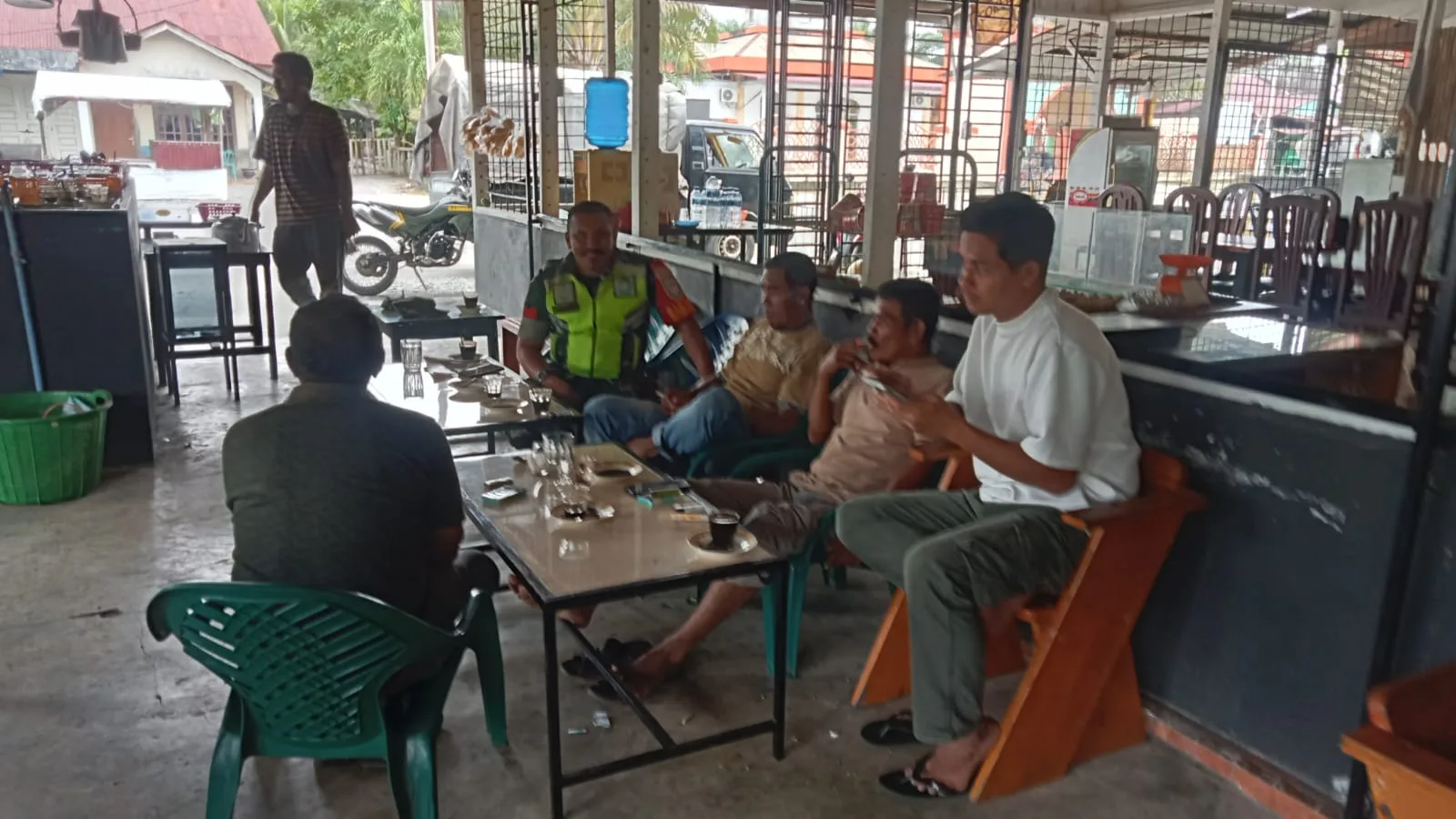 Babinsa Posramil Kuala Pesisir, Kopka Subhaini melaksanakan Komsos dengan masyarakat/Aparat desa binaan di Desa Kuala Baro Kec.Kuala Pesisir, Kab. Nagan Raya, Jum’at (19/12/2025).
