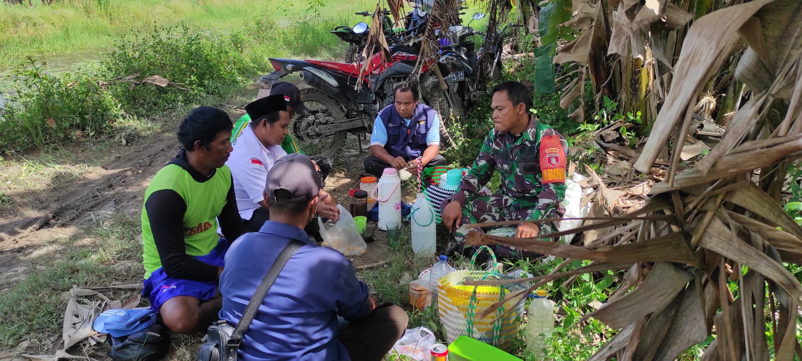 Aparat Desa beserta Babinsa tidak hanya melaksanakan koordinasi terkait kendala yang diterima oleh para Petani, namun juga mengecek secara langsung di Lapangan apa kendala-kendala tersebut.