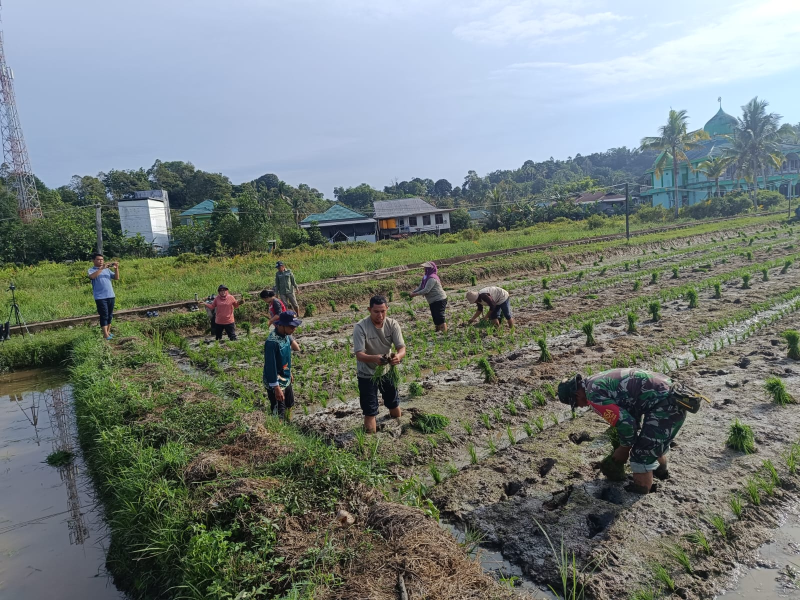 Tarakan – Dalam rangka mendukung ketahanan pangan dan membantu masyarakat di wilayah binaannya, Babinsa Koramil 0907/01 Tartim Sertu M.Arifin turun langsung membantu proses penanaman padi warga binaan