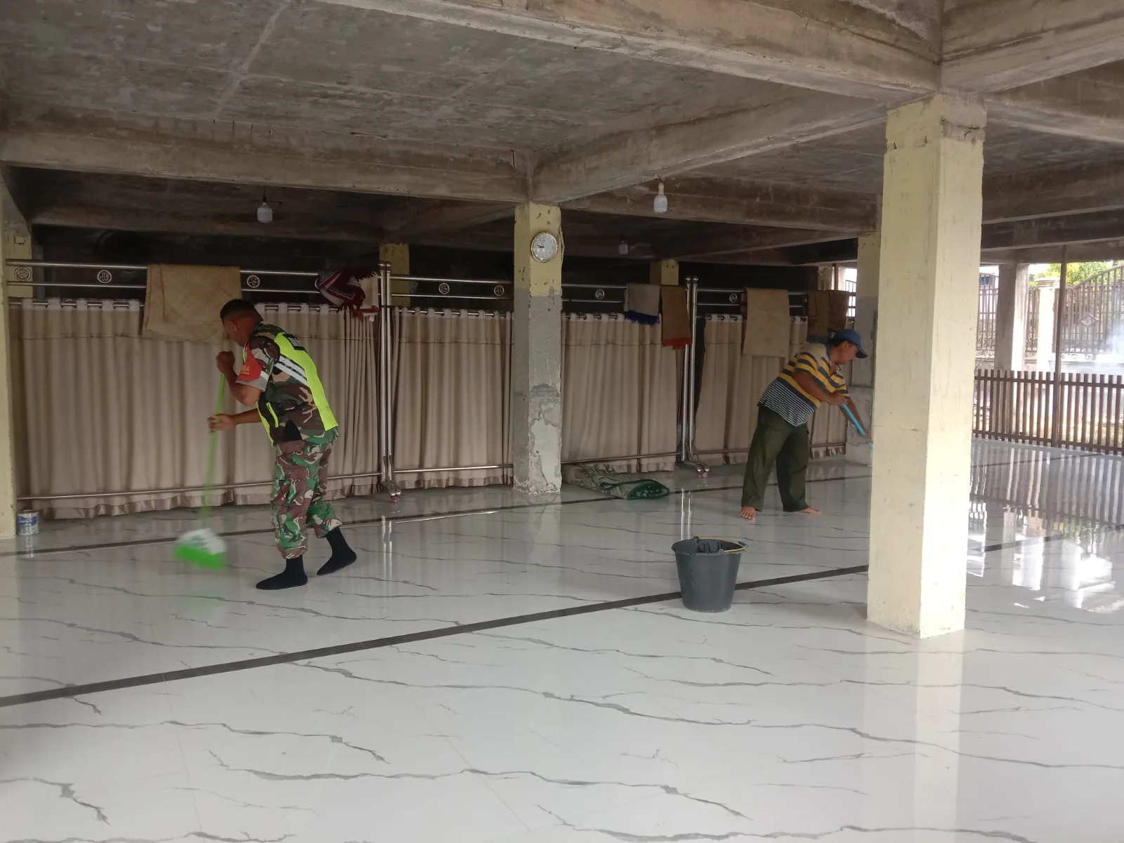 Kegiatan tersebut dilakukan sebagai bentuk kebersamaan antara TNI dan masyarakat dalam menjaga kebersihan lingkungan, khususnya sarana ibadah yang menjadi pusat kegiatan keagamaan dan sosial warga.