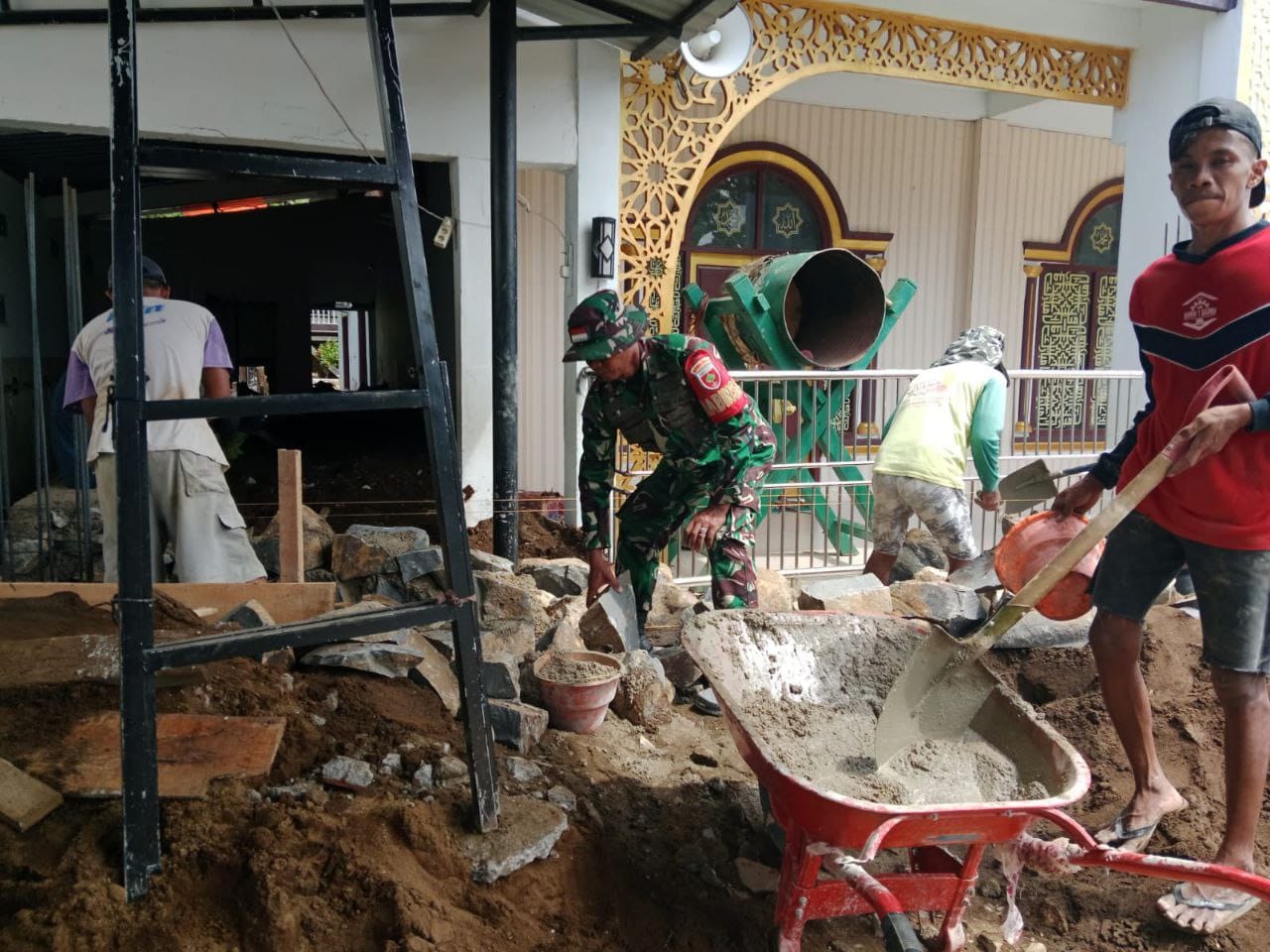 Kegiatan gotong royong ini merupakan suatu peran aktif Babinsa selaku aparat kewilayahan, yang hadir dalam pembangunan sarana ibadah di wilayah binaannya, sekaligus menjalin kebersamaan dan mempererat tali silaturahmi demi mewujudkan kemanunggalan TNI bersama rakyat.