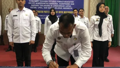 Banjarbaru, INFO_PAS – Lembaga Pemasyarakatan (Lapas) Kelas IIB Banjarbaru mengikuti kegiatan Penandatanganan Komitmen Bersama Jajaran…