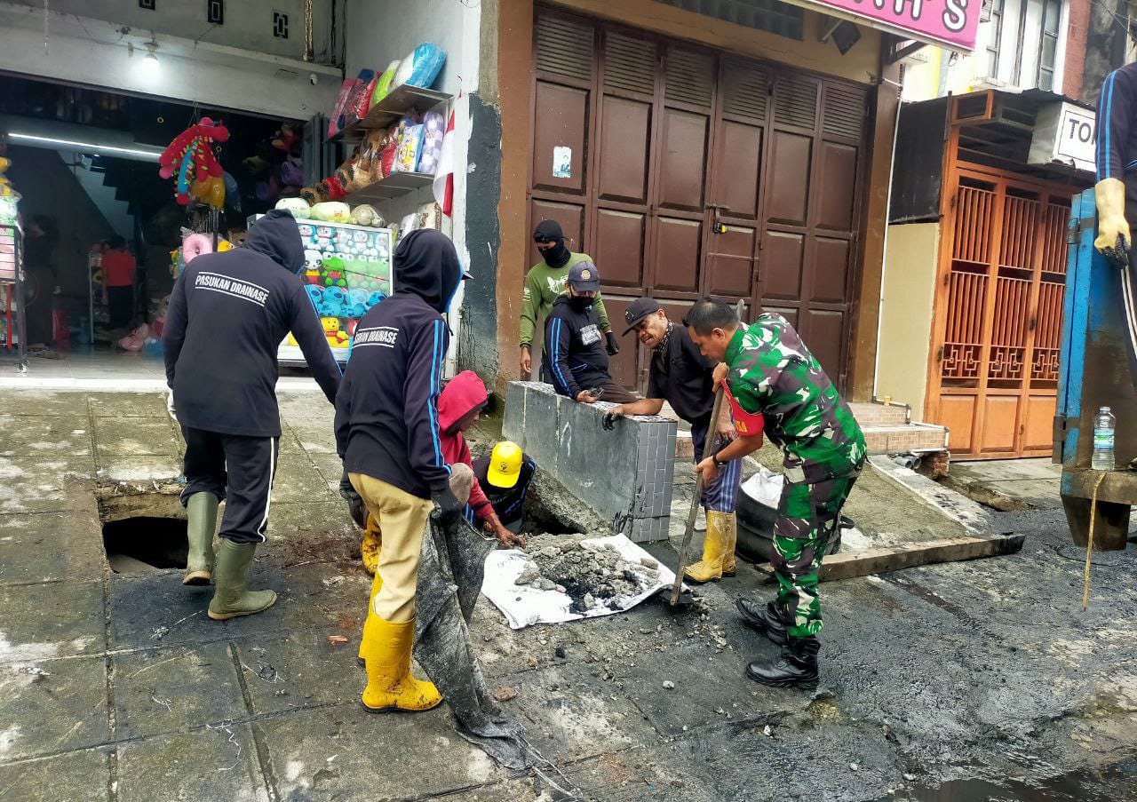 Kerja bakti dipimpin langsung oleh Danramil-04/Paleteang Kapten Cba Ridwan dengan melibatkan Staf Kelurahan, Dinas PURR dan warga setempat dengan sasaran pembersihan saluran air yang tersumbat sampah-sampah rumah tangga dan pasir.