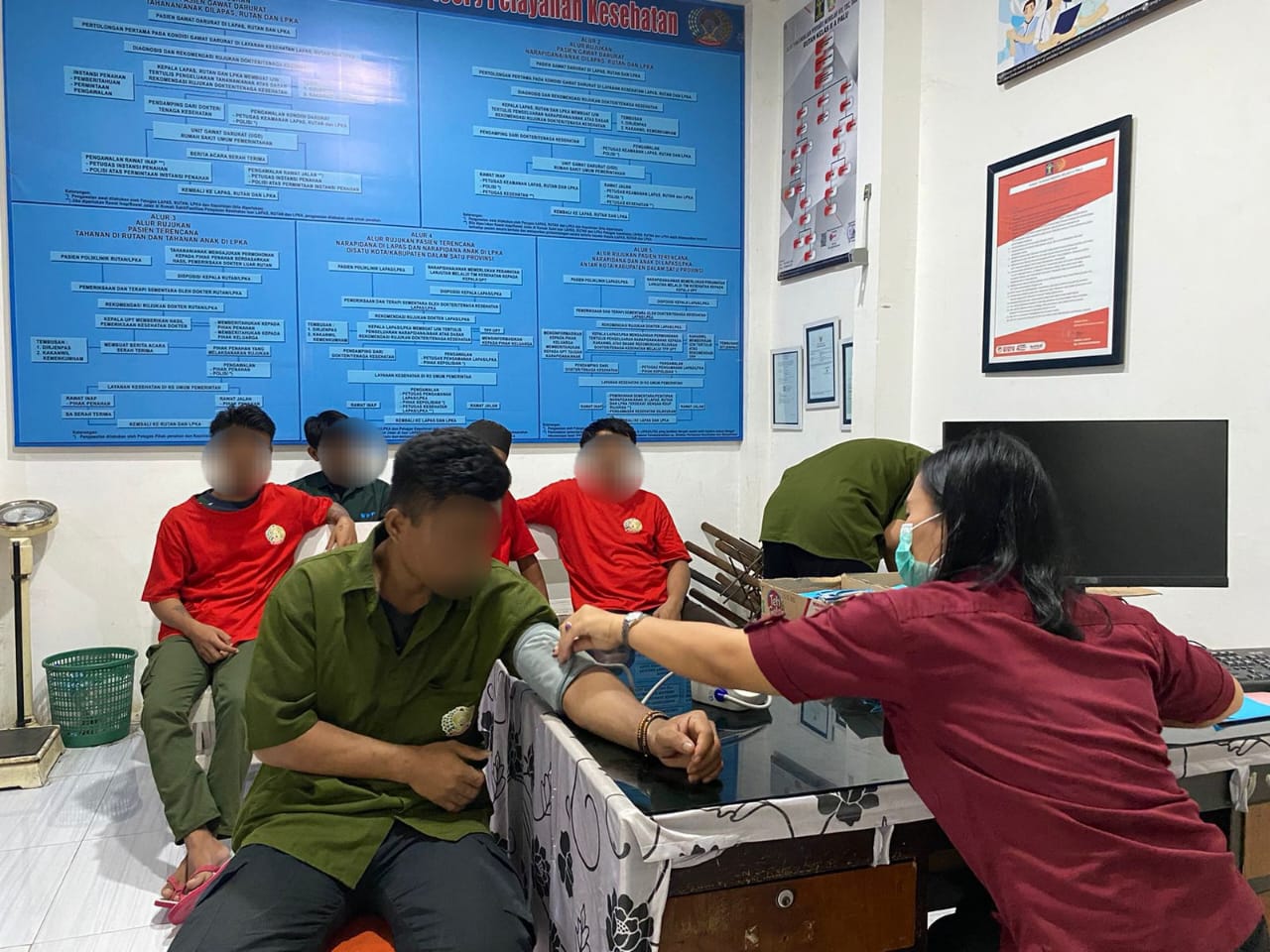 Pemeriksaan dilakukan meliputi mendengarkan keluhan yang dirasakan WBP, pemeriksaan fisik, dan pemberian vitamin serta obat kepada WBP untuk peningkatan daya tahan tubuh pemulihan. Tidak lupa juga penyuluhan singkat terkait tata cara hidup sehat menjaga keberseihan lingkungan agar terhindar dari penyakit berbahaya.
