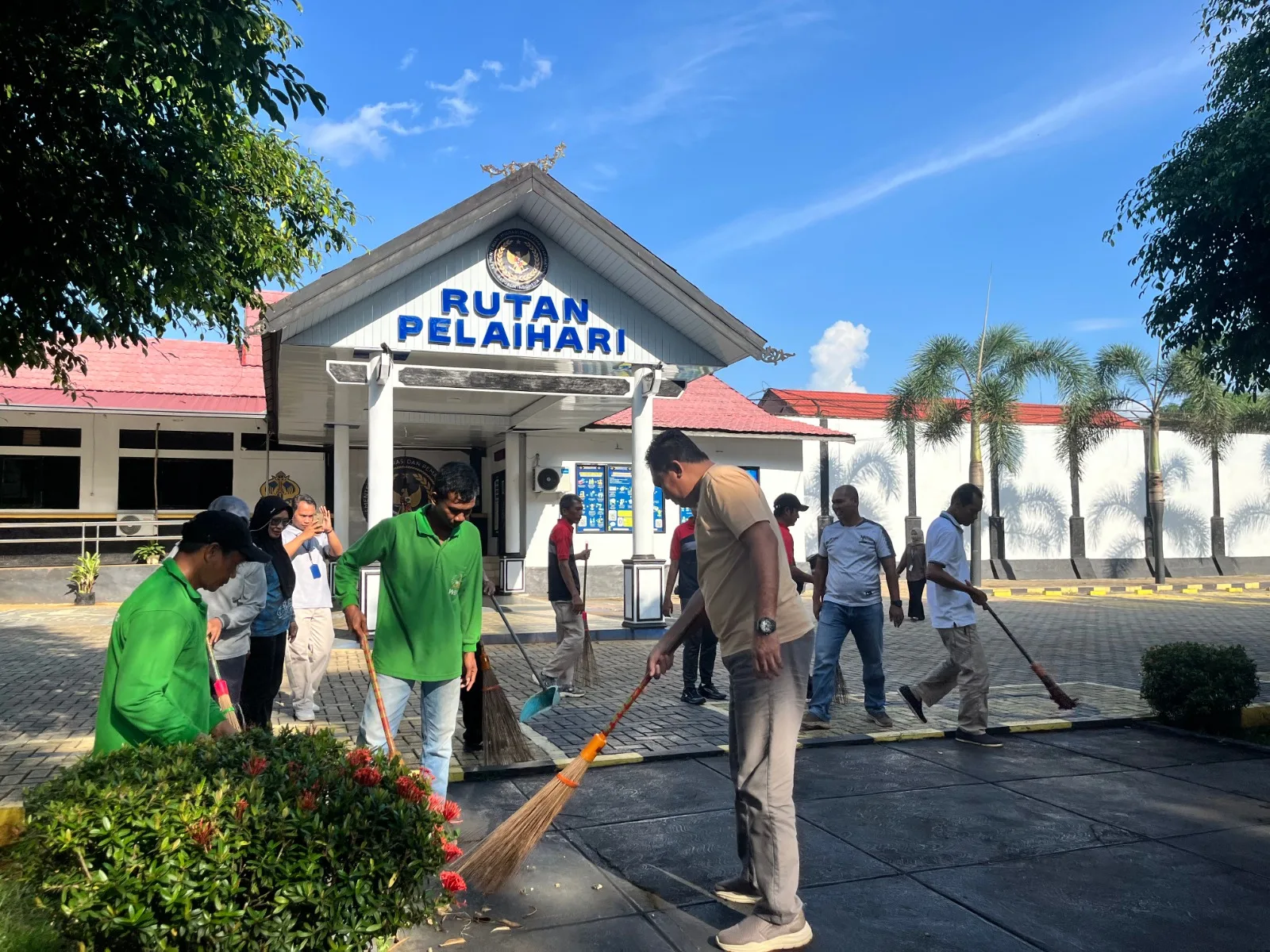PELAIHARI, INFO_PAS — Semangat kebersamaan dan kepedulian terhadap lingkungan terlihat jelas di Rumah Tahanan Negara (Rutan) Kelas IIB Pelaihari pada Sabtu (14/03). Sejak pukul 09.00 WITA, Kepala Rutan Pelaihari, Eri Triyanto, bersama jajaran pegawai dan warga binaan bergotong royong melaksanakan kerja bakti membersihkan lingkungan rutan.