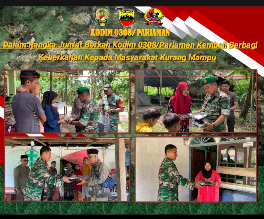 Sementara itu, Dandim 0308/Pariaman Letkol Czi Nur Rahmat Khaeroni Melalui Danramil 08/Pariaman Kapten Inf Zamri menyampaikan, kegiatan Jumat Berkah Kodim 0308/Pariaman ini dilakukan untuk membantu masyarakat sekitar dan mengambil keberkahan sedekah di hari jumat dengan saling tolong menolong.