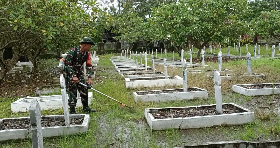 Pinrang_ Dalam rangka memperingati Hari Juang Kartika Tahun 2025, Kodim 1404/Pinrang melaksanakan kegiatan kerja bakti pembersihan Taman Makam Pahlawan (TMP) Palia yang terletak di Kelurahan Pacongan Kecamatan Paleteang Kabupaten Pinrang, Selasa (09/12/2025).