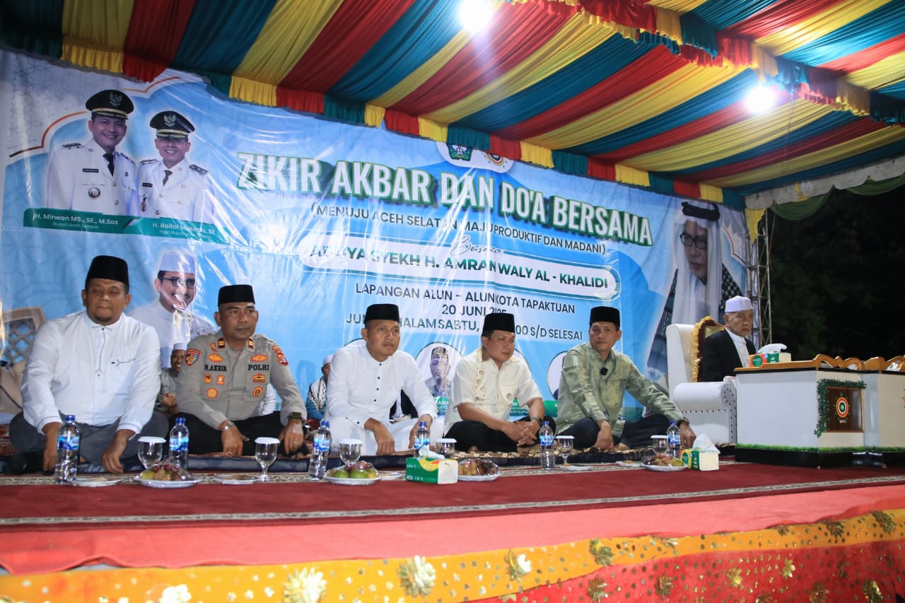 ‎Acara yang bertema ”Menuju Aceh Selatan Maju, Produktif dan Madani” ini dipimpin langsung oleh pimpinan Pondok Pasantren Darul Ihsan Labuhanhaji Abuya Syekh Amran Waly Al – Khalidy. Suasana penuh khidmat menyelimuti kegiatan yang diawali dengan pembacaan ayat suci Al-Qur’an, dilanjutkan dengan zikir bersama dan doa untuk keselamatan serta kemajuan Aceh Selatan