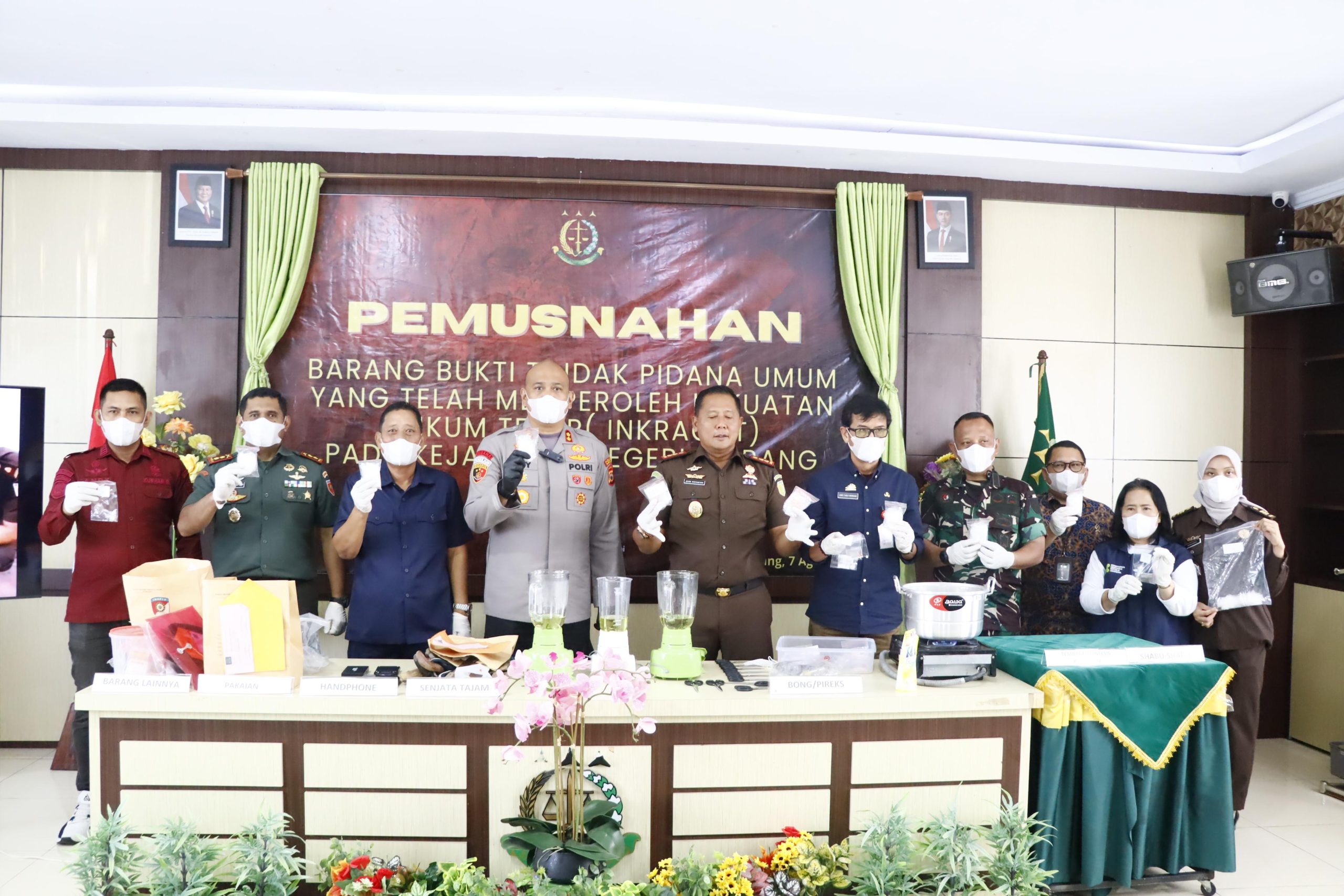 Dandim 1404/Pinrang Bersama Forkopimda Hadiri Pemusnahan Barang Bukti Di Kejaksaan Negeri Pinrang