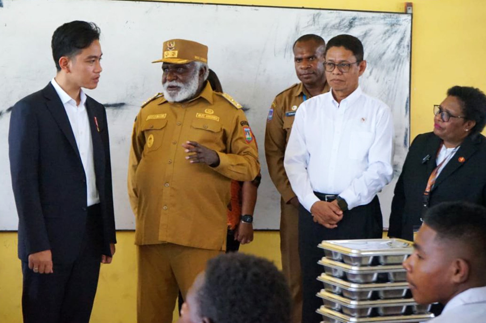 ”Setibanya di Base Ops Bandar Udara Mopah Merauke, Wapres beserta rombongan langsung menuju SMP Negeri Gudang Arang Kota Merauke untuk meninjau pelaksanaan Program Makan Bergizi Gratis (MBG) yang merupakan program prioritas Presiden RI Prabowo Subianto”. ujar Letkol Dili, Kamis (18/9/2025).