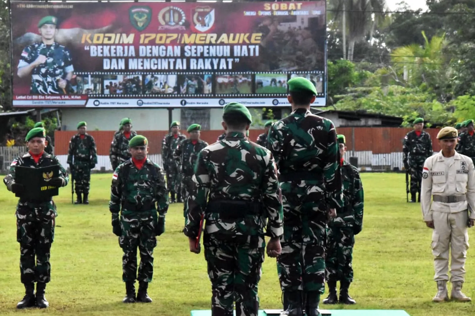 Bertempat di Lapangan Makodim 1707/Merauke, Jln. Raya Mandala, Distrik Merauke, Kabupaten Merauke – Provinsi Papua Selatan, Dandim 1707/Merauke Letkol Czi Dili Eko Setyawan, S.Ak., M.Han memimpin upacara bendera tujuh belasan Bulan Oktober Tahun 2025. Bertindak sebagai Danup Pasi Ter Kodim 1707/Merauke Kapten Czi Sage sedangkan Paup Pasilog Kodim 1707/Merauke Kapten Trimo Widodo. Jum’at (17/10/2025).