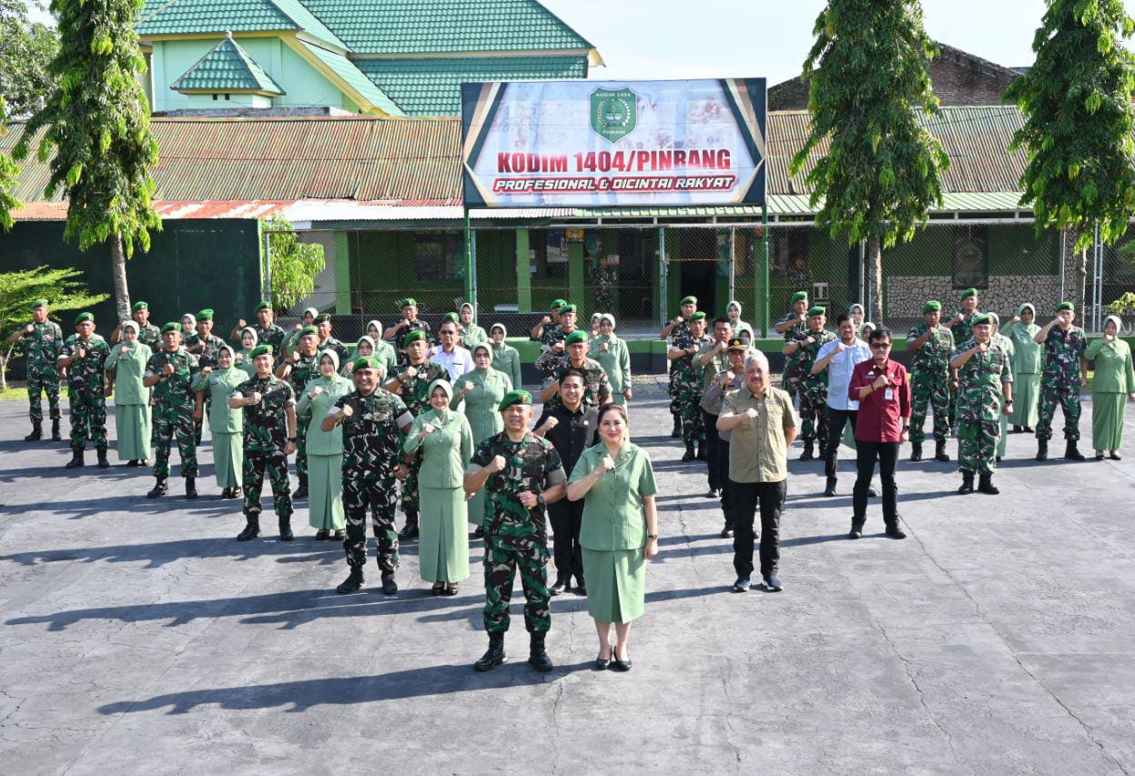Pinrang_ Komandan Korem 141/Toddopuli Brigjen TNI Andre Clift Rumbayan, S. Sos., M.M., didampingi Ketua Persit Kartika Chandra Kirana (KCK) Koorcab Rem 141 PD XIV/Hasanuddin, Ny. Yuliana Rumbayan melakukan kunjungan kerja ke Kodim 1404/Pinrang, Kamis (18/09/2025).
