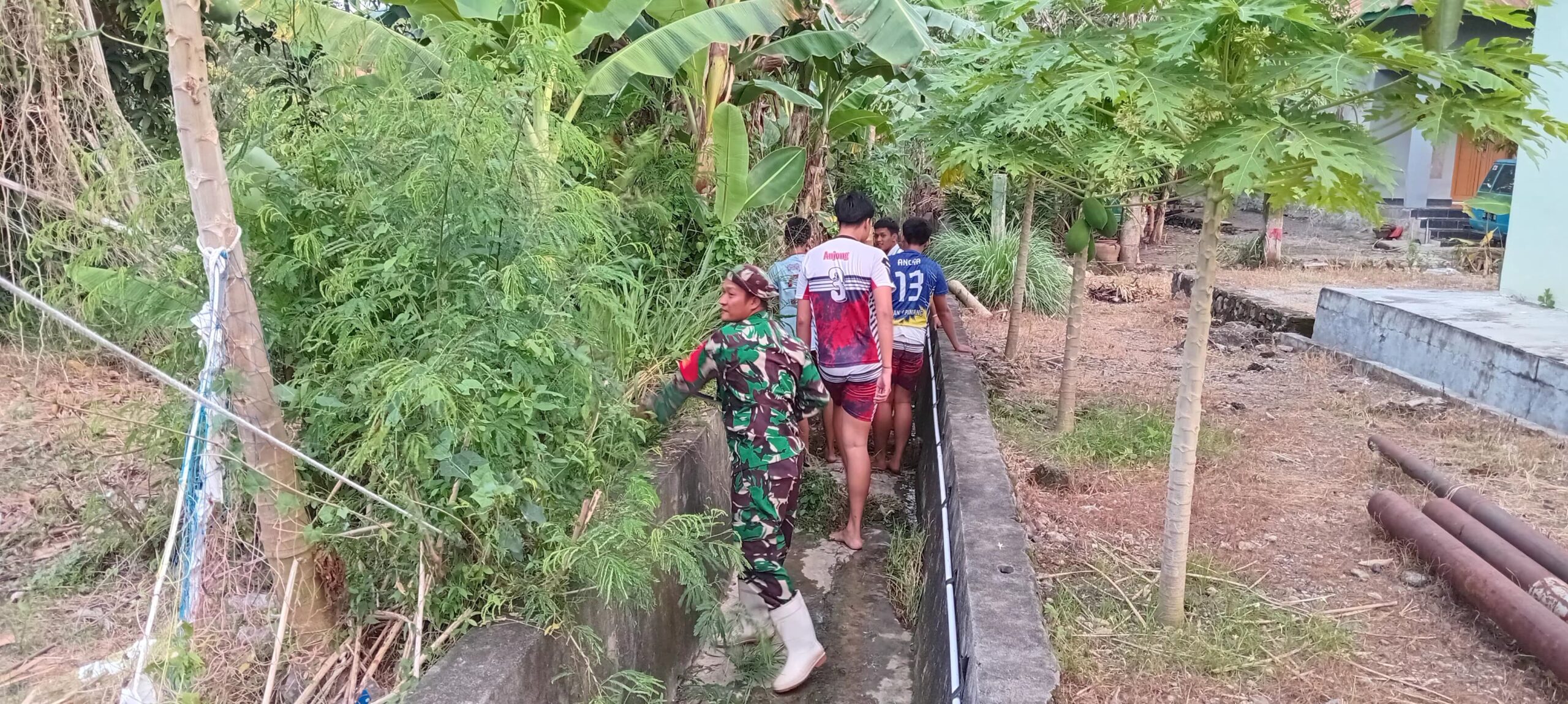 Terlihat begitu kompak Babinsa bersama warga berjibaku untuk membersihkan saluran air dengan penuh semangat dengan sampah-sampah dan rumput liar yang membuat saluran air mengalami pendangkalan.