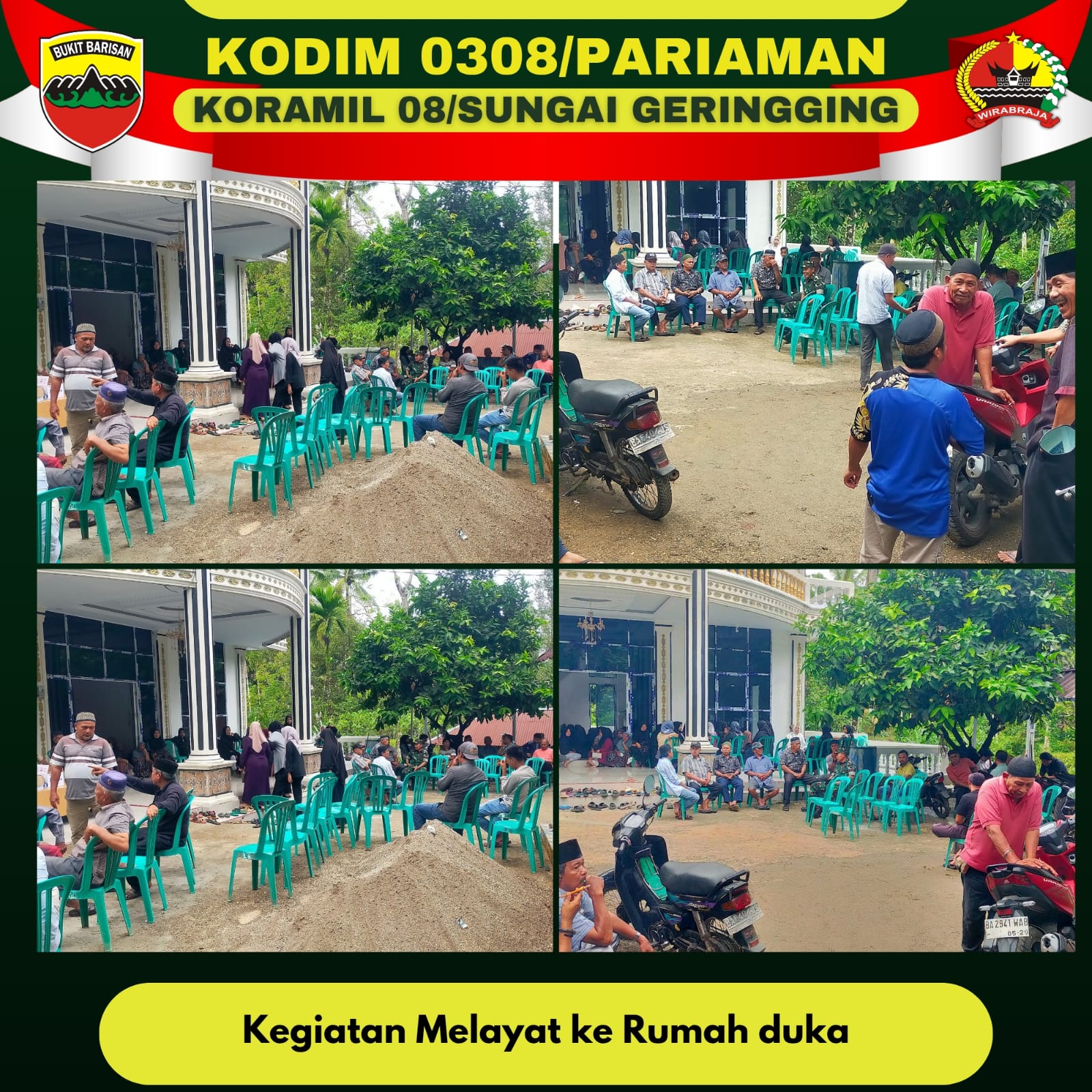 SUNGAI GERINGGING, – Danramil 08/ Sungai Geringging, Kapten Inf Zamri, melayat ke rumah duka salah satu warga binaannya (ALM) Buk Marianto (56 th) Meninggal dunia karena Sakit di Kecamatan Sungai Geringging, Kabupaten Padang Pariaman, Selasa (09/07/2025).