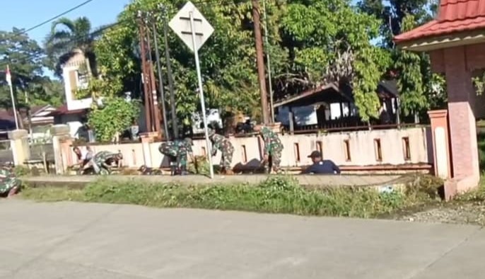 Kehadiran personil Babinsa dari Koramil-08 semakin menambah semangat masyarakat dalam melaksanakan karya bakti.