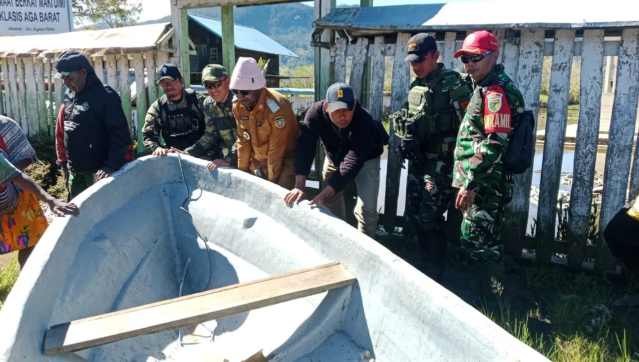 Paniai – Danramil 1703-01/Enarotali Kapten Inf Eko Warsito turut mendampingi Bupati Kabupaten Paniai, Yampit Nawipa, A.Md.Tek, dalam kegiatan penyaluran bantuan berupa beras kepada masyarakat yang terdampak banjir di Distrik Topiyai, Ekadide, dan Aradide Kabupaten Paniai, Provinsi Papua Tengah. Pada Senin (29/09/2025).