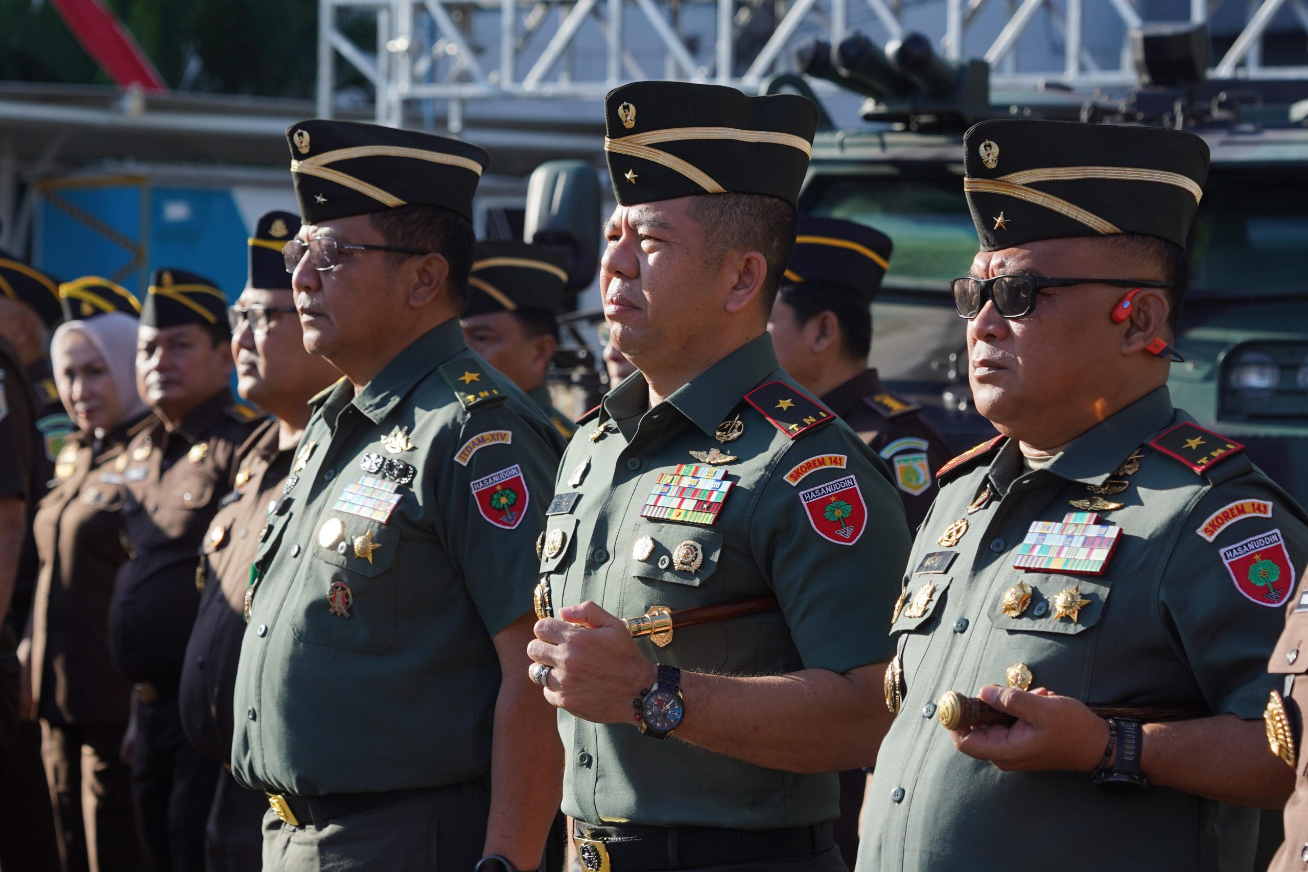 Makassar – Komandan Korem 141/Tp Brigjen TNI Andre Clift Rumbayan, S.Sos., M. M., menghadiri Apel Gelar dan Penandatanganan PKS Pam Kejari/Kejati Wilayah Sulsel dan Sultra bertempat di Lapangan Kejaksaan Tinggi Prov. Sulsel Jl. Urip Sumoharjo Kec. Panakkukang, Kota Makassar.