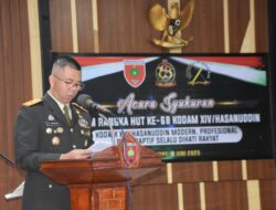 HUT ke-68 Kodam XIV/Hsn tahun 2025 kali ini memgangkat tema “Kodam XIV/Hasanuddin Yang Modern, Profesional dan Adaptif Selalu Dihati Rakyat”. Kegiatan ini dihadiri oleh Kasi Ren, Para Kasi Kasrem 141/Tp, Para Dan/Ka Balakrem 141/Tp, dan seluruh Personel Korem 141/Tp serta para Dandim se jajaran Korem 141/Tp.