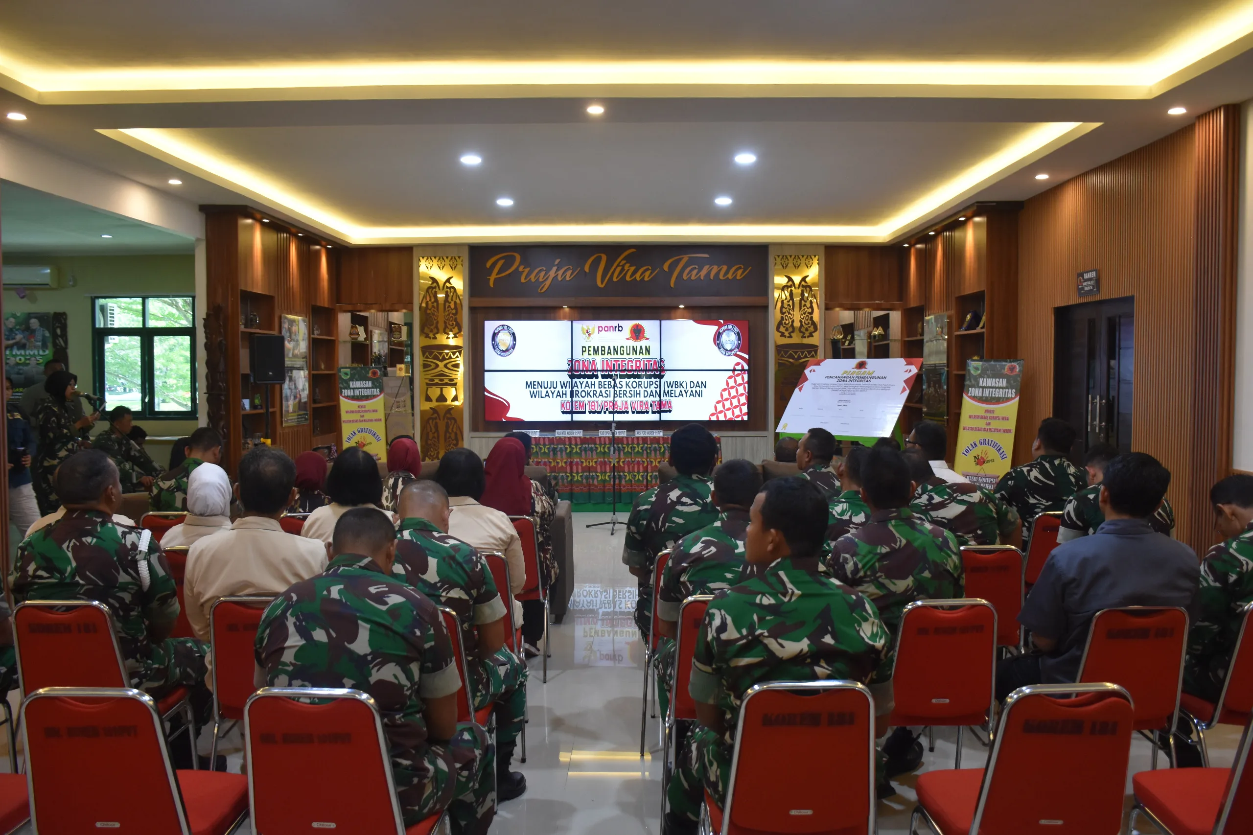 Pencanangan Zona Integritas ini dilaksanakan sebagai langkah strategis menuju predikat Wilayah Bebas dari Korupsi (WBK) serta Wilayah Birokrasi Bersih dan Melayani (WBBM) di lingkungan Korem 181/PVT. Dalam sambutannya, Danrem menegaskan bahwa pembangunan Zona Integritas bukan hanya sekadar seremonial, tetapi harus diwujudkan dalam tindakan nyata oleh seluruh prajurit dan aparatur.