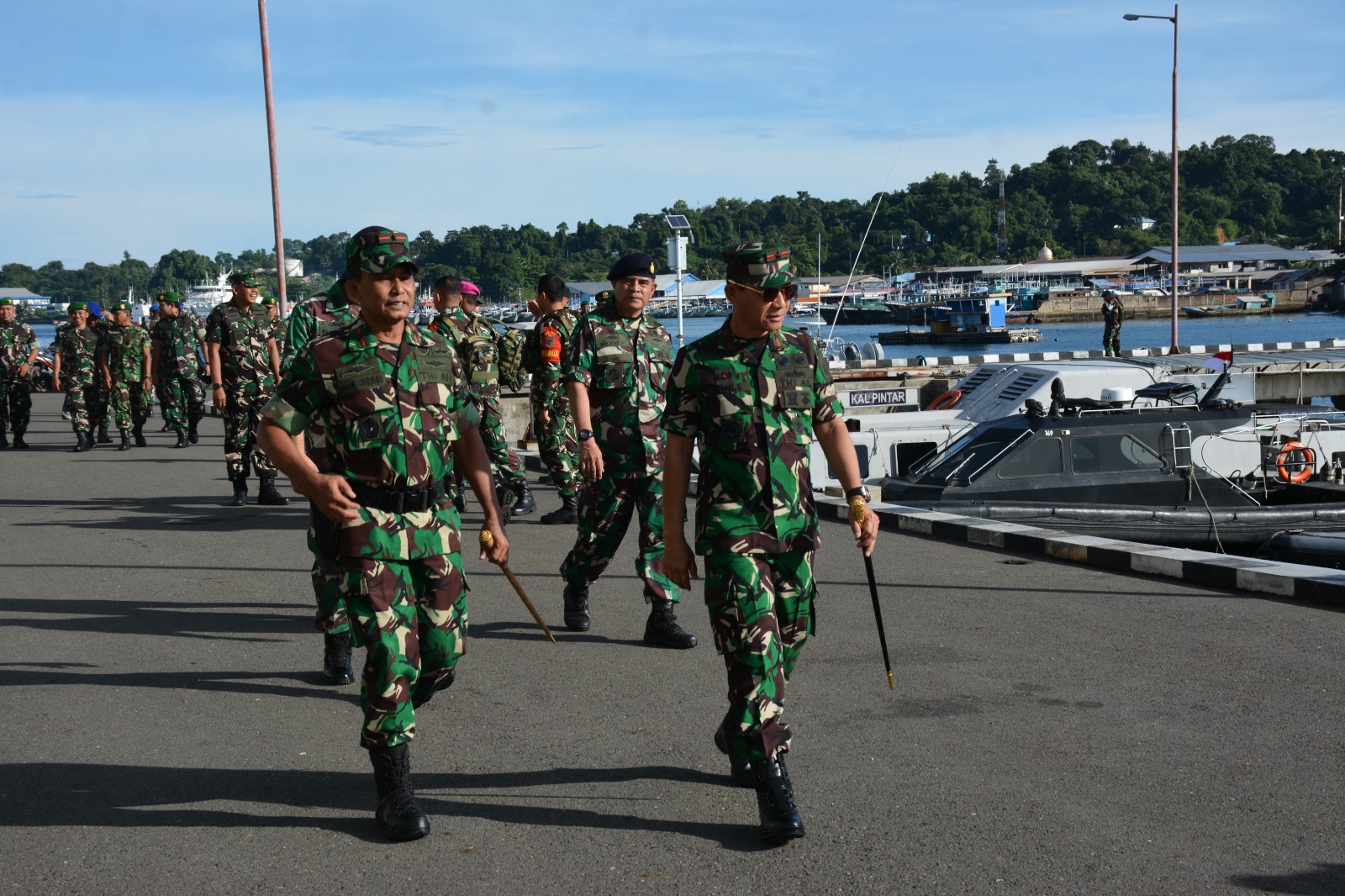 Setelah penyambutan resmi di pelabuhan, rombongan Satgas akan melaksanakan pergeseran pasukan (Serpas) menuju Marselling Area di Gedung Serba Guna (GSG) Yonif 762/VYS pada pukul 13.30 WIT, setelah proses bongkar muatan selesai dilaksanakan.