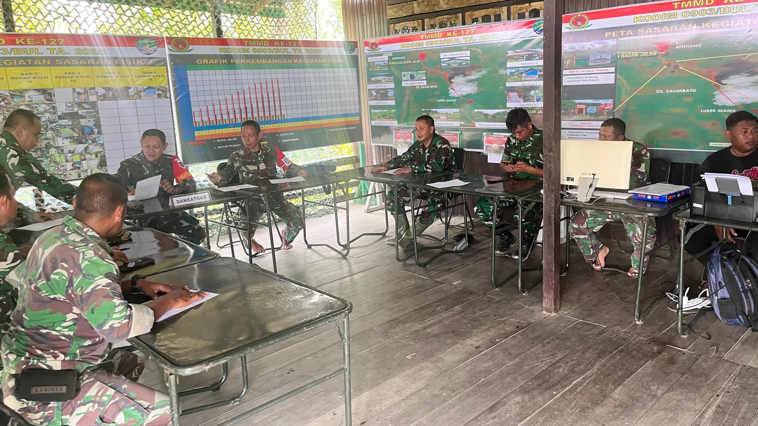 Kegiatan briefing tersebut dilaksanakan sebagai bentuk pengawasan dan pengendalian terhadap seluruh rangkaian program TNI Manunggal Membangun Desa (TMMD) ke-127 yang tengah berjalan. Dalam arahannya, Dansatgas menekankan pentingnya kedisiplinan, koordinasi, serta kerja sama yang solid antara personel Satgas dan masyarakat agar setiap sasaran dapat tercapai sesuai rencana.