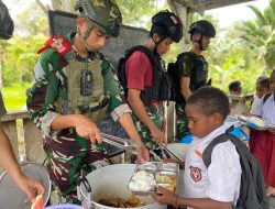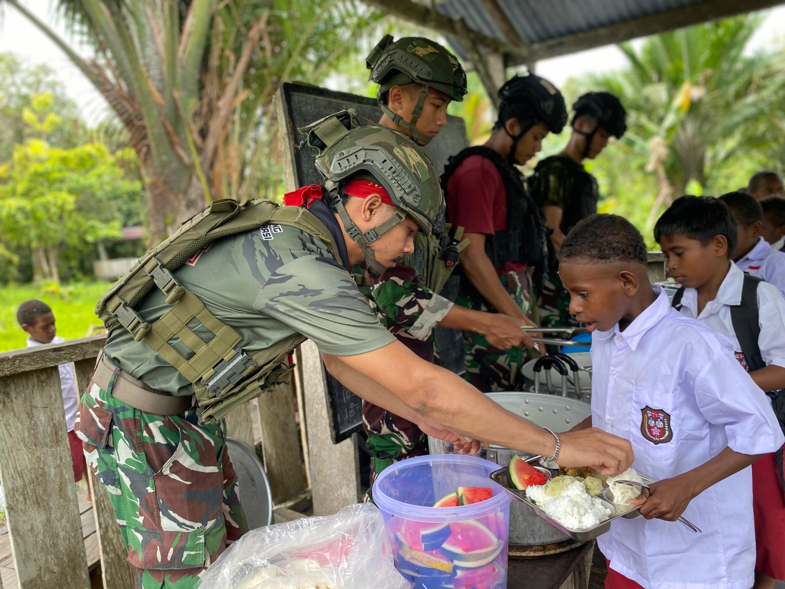 Papua, 09 September 2025 – Di tengah hutan Papua, harapan baru tumbuh subur. Satuan Tugas Pengamanan Perbatasan (Satgas Pamtas) Mobile Yonif 733/Masariku menggelar kegiatan “Masariku Peduli Gizi” di Sekolah Dasar (SD) Rimba Mumugu, Distrik Sawa Erma, Kabupaten Asmat sebagai komitmen nyata untuk meningkatkan kualitas hidup anak-anak di garis depan NKRI.