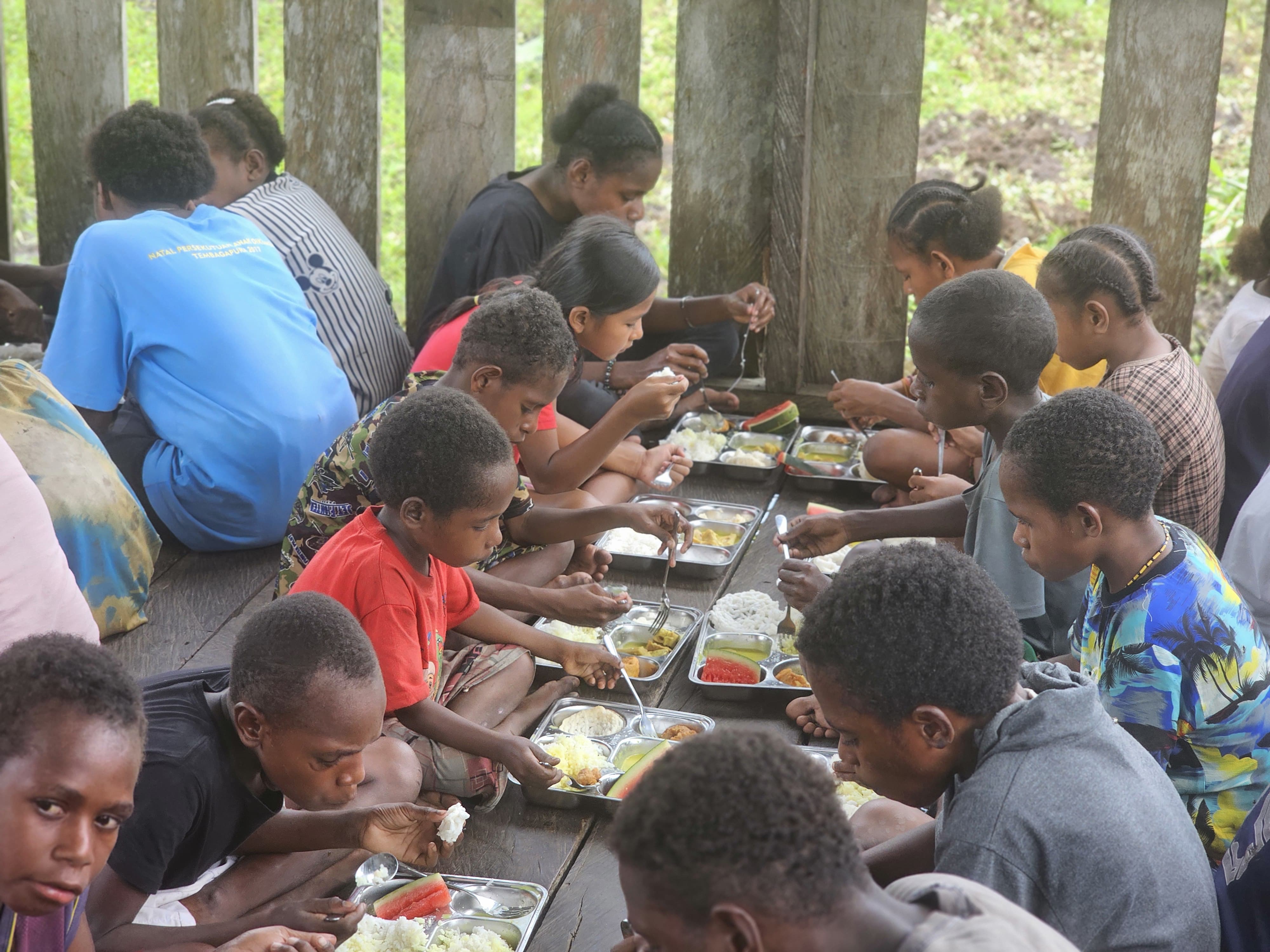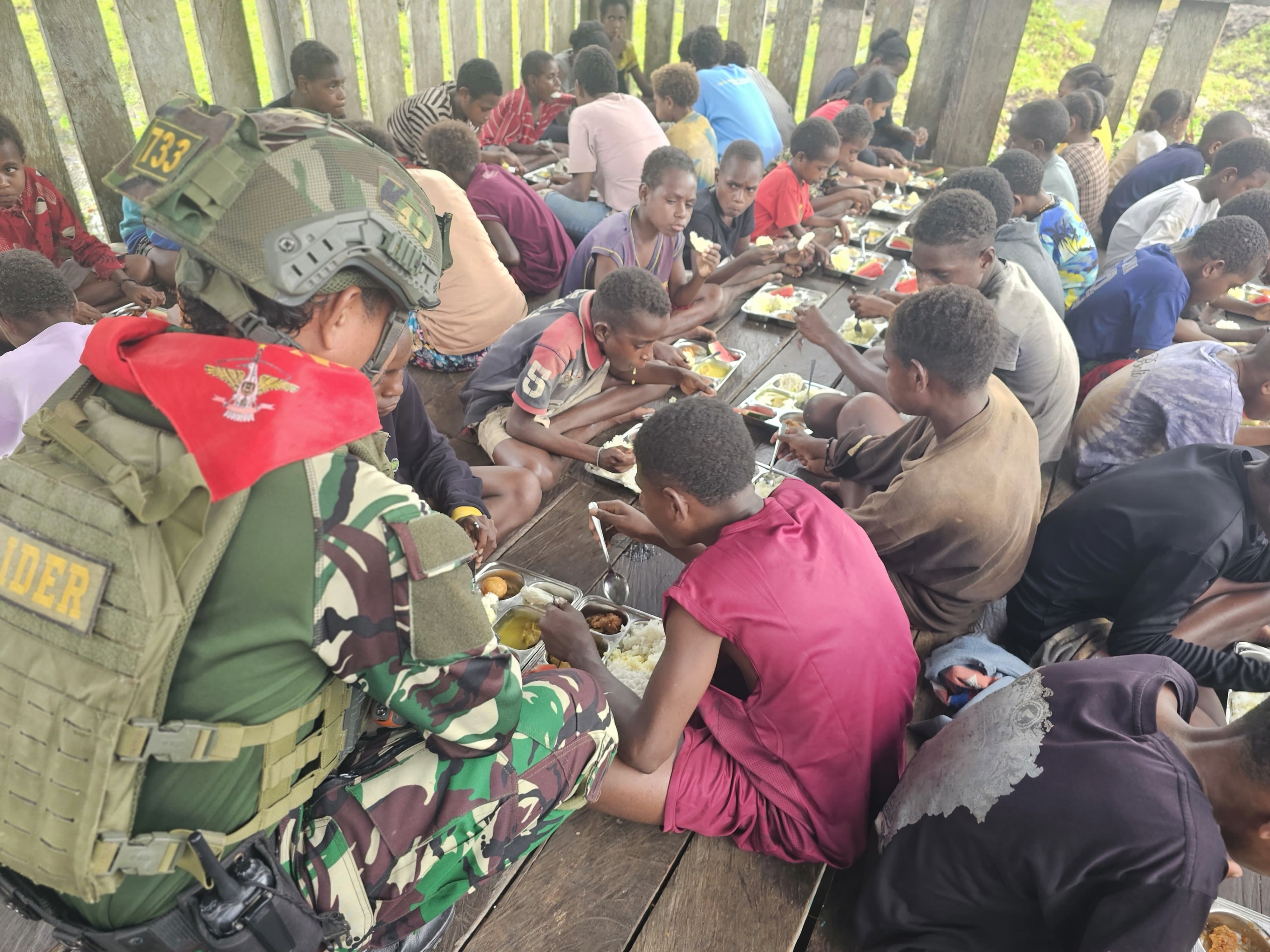 Program ini dilaksanakan pada Sabtu (6/9) dan menyasar seluruh siswa SD Rimba Mumugu. Dalam kegiatan tersebut, Satgas Pamtas Mobile Yonif 733/Masariku membagikan makanan bergizi berupa nasi dengan lauk ayam dan sayuran, buah-buahan, susu. Selain pembagian makanan, prajurit masariku juga memberikan edukasi singkat tentang pentingnya gizi seimbang bagi pertumbuhan dan perkembangan anak.