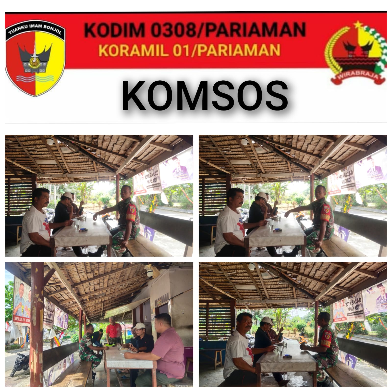 PARIAMAN,– Kegiatan Komsos adalah salah satu media Babinsa untuk mengenal warganya lebih dekat lagi dan sebagai sarana silaturahmi kepada warga binaannya agar warga menjadi lebih dekat dan akrab dengan Babinsanya. Selain itu kegiatan Komsos ini bertujuan untuk mencari informasi dan mengetahui perkembangan situasi di wilayah Desa binaan.