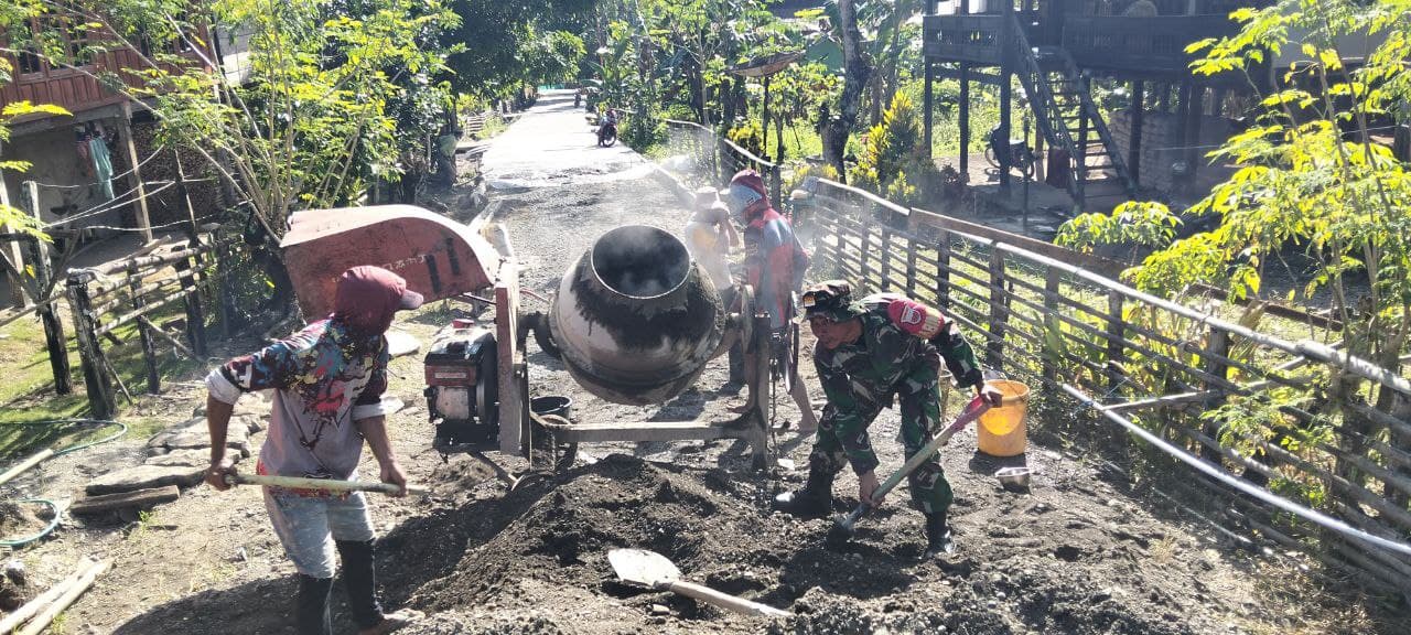 KODIM 1405/PAREPARE – Dengan semangat gotong-royong Babinsa Koramil 1405-06/Barru Serda Agus Jumeno bersama masyarakat bahu membahu melaksanakan kegiatan gotong royong pengecoran Jalan, bertempat di Dusun Tompo Desa Tompo Kecamatan Barru Kabupaten Barru. Jum’at (27/06/2025)