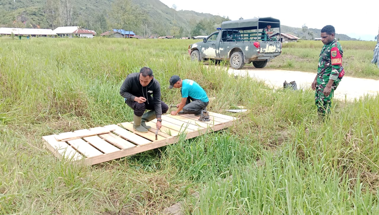 Bibida – Untuk memastikan proses pengerjaan Karya Bakti rehab Rumah Tidak Layak Huni (RTLH) di wilayah teritorial berjalan dengan lancar, Komandan Koramil (Danramil 1703-01/Enarotali) Kapten Inf Eko Warsito melakukan peninjauan lokasi serta pembangunan Jembatan agar memudahkan tukang untuk mengakut bahan bangunan dalam Pembangunan Rumah milik Bapak Kris Zonggonau yang beralamat di kampung Bibida, Distrik Bibida, Kabupaten Paniai, Kamis (31/07/2025)
