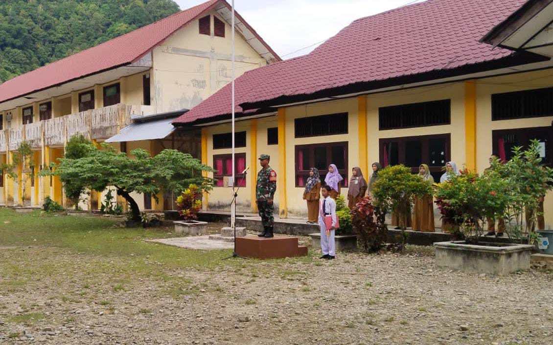 Didik Generasi Tangguh, Babinsa Koramil 01/Tapaktuan Pimpin Upacara dan Beri Motivasi di Sekolah