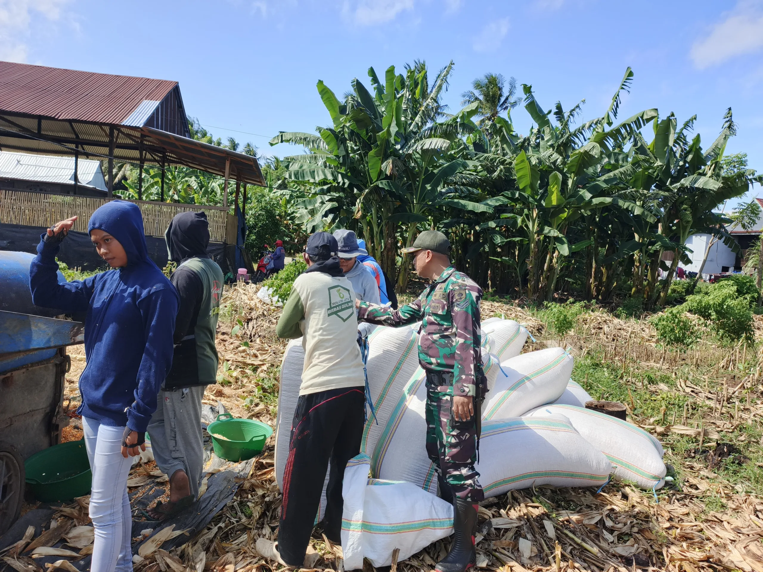 Babinsa Sertu Arief Budi menyampaikan bahwa keterlibatan dirinya dalam kegiatan panen jagung ini merupakan bagian dari tugas pembinaan teritorial guna memperkuat ketahanan pangan di wilayah binaan.