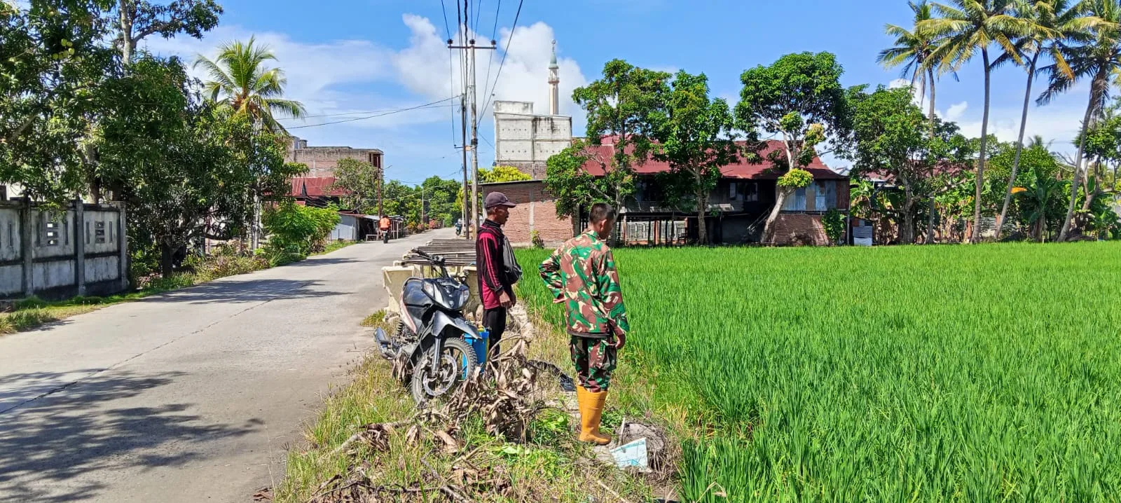 Dalam kesempatan tersebut, Serka Sangkala juga memberikan motivasi dan semangat kepada para petani agar terus merawat tanaman padi dengan optimal. Ia menegaskan bahwa pendampingan yang dilakukan Babinsa merupakan bentuk kepedulian TNI dalam mendukung program ketahanan pangan nasional.
