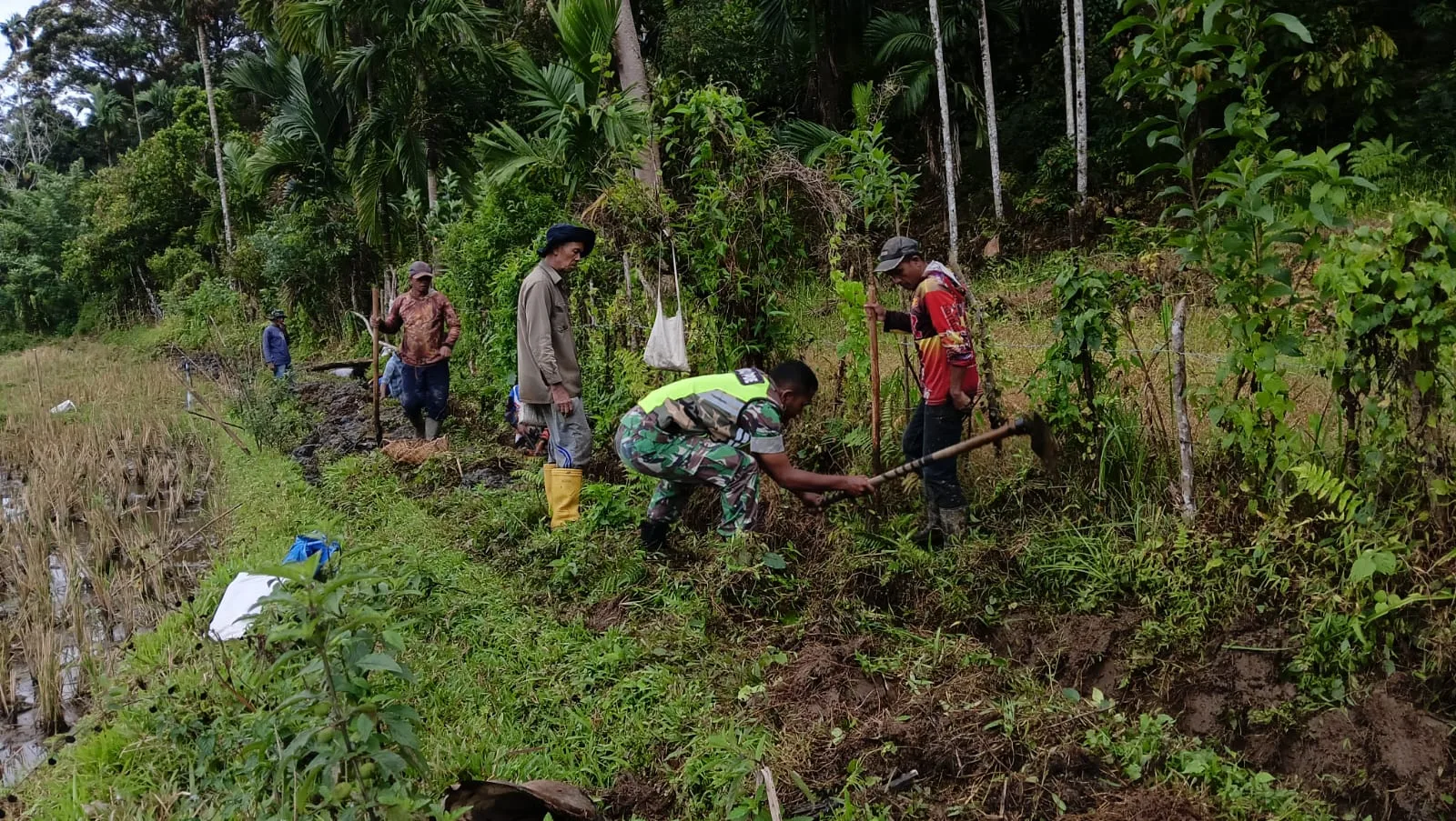 Pembersihan saluran irigasi ini bertujuan memastikan aliran air menuju area persawahan tetap lancar, sehingga kebutuhan air bagi para petani dapat terpenuhi secara optimal. Kegiatan tersebut juga menjadi wujud sinergi antara TNI dan masyarakat dalam menjaga sarana pertanian sebagai penopang ketahanan pangan desa.
