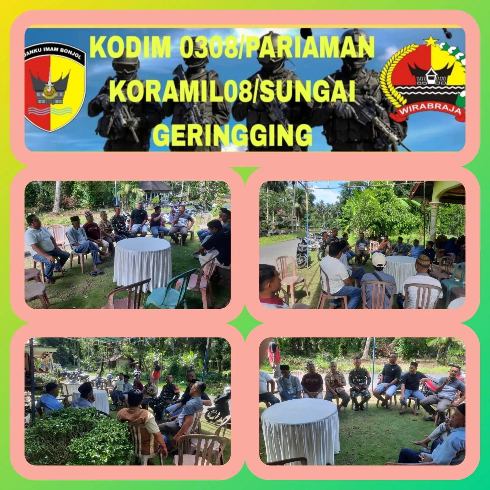 SUNGAI GERINGGING, – Babinsa Koramil 08/Sungai Geringging, Kodim 0308/Pariaman serda fajar p melaksanakan komunikasi sosial (Komsos) dengan Masyarakat yang merupakan warga binaan. Komsos di gelar di wilayah Korong kampung jawi jawi, Nagari Balai baiak Kec.lV Koto Aur Malintang Kab.Padang Pariaman, minggu (19/10/2025).