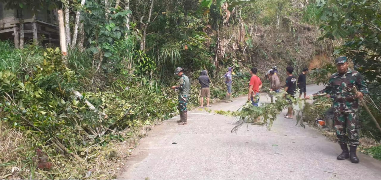ENREKANG – di Pimping Ba Tuud Koramil 1419-04/Alla Pelda Yudin Djoni bersama warga Melaksanakan karya bakti pembersihan selokan dari tanah, rumput dan sampah lainnya sepanjang 150 meter di Dusun Buntu Lengkua Desa Buntu Pema Kec. Curio Kab. Enrekang, Rabu, 02/07/2025.