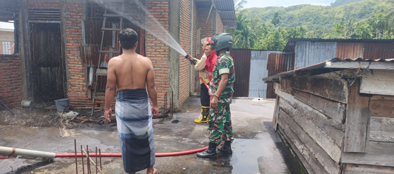 Gerak Cepat, Babinsa Koramil 05/Samadua dan Damkar Padamkan Api Yang Membakar Rumah Warga
