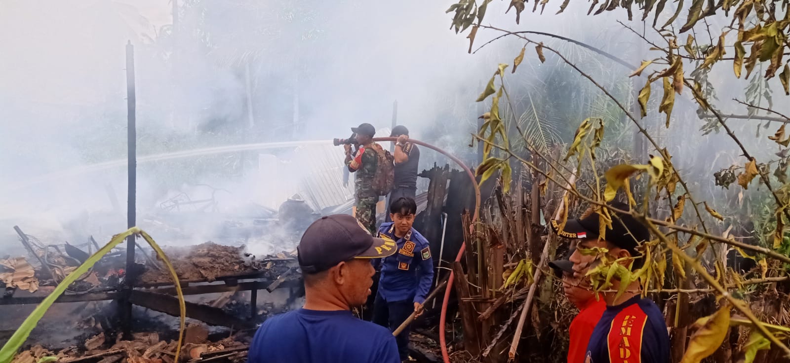 “Bersama petugas Damkar dan dibantu masyarakat kita bergotong royong memadamkan kobaran api yang telah membakar bangunan dan berselang beberapa waktu api dapat di padamkan,”ujar Danramil.