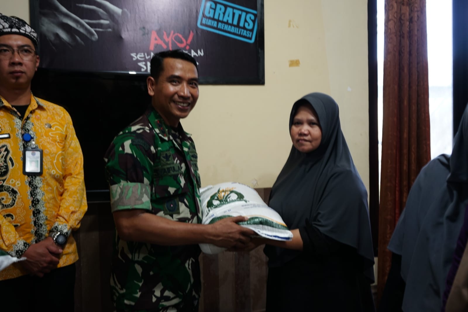 Personel Kodim membantu proses distribusi bantuan pangan, tidak hanya itu pihaknya juga membantu distribusi sampai ke rumah warga yang tidak sempat atau tidak mampu mengambil beras di lokasi pendistribusian.