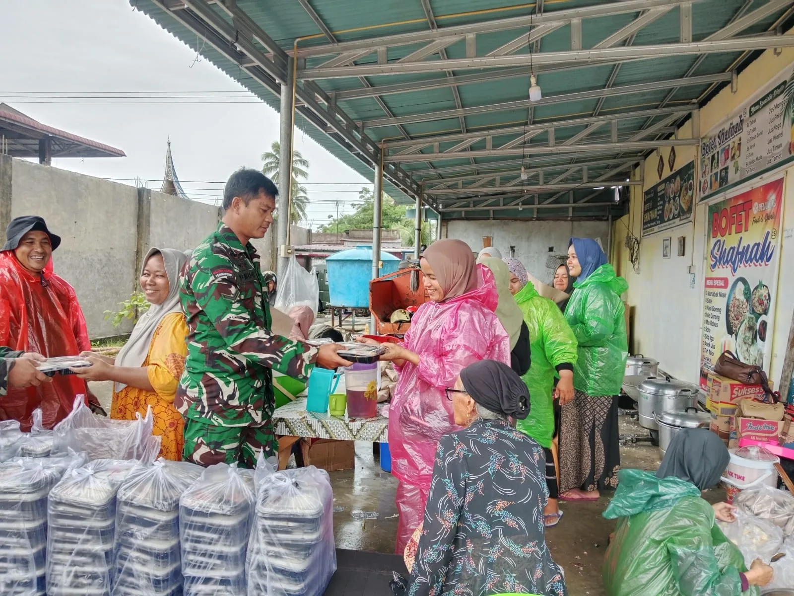 PAUH KAMBAR, – Babinsa Koramil 07/Pauh Kambar Kodim 0308/Padang Pariaman Sertu Pry Iryanto kembali lakukan Jum’at Berkah, dengan membagikan makanan berupa nasi kotak kepada masyarakat yang kena Dampak banjir di Nagari kampung glapung ulakan, Kec. Ulakan Tapakis, Jum’at (28/11/2025).